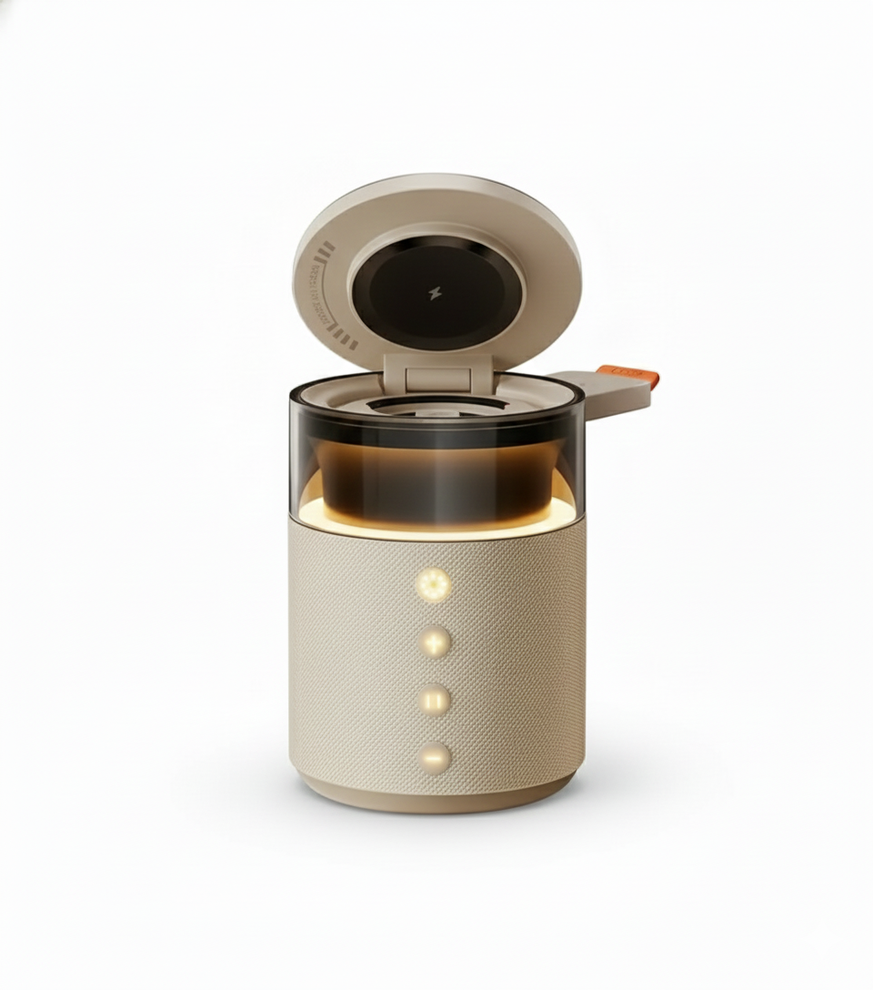 This 5-in-1 magnetic wireless charging station combines functionality and design for simultaneously charging your iPhone, iWatch, and wireless headphones. With a built-in wireless speaker and a soft nightlight, it offers a comprehensive user experience for home or office. Strong magnets ensure your devices are securely positioned, while the charging pad remains stable even with movement or on uneven surfaces.