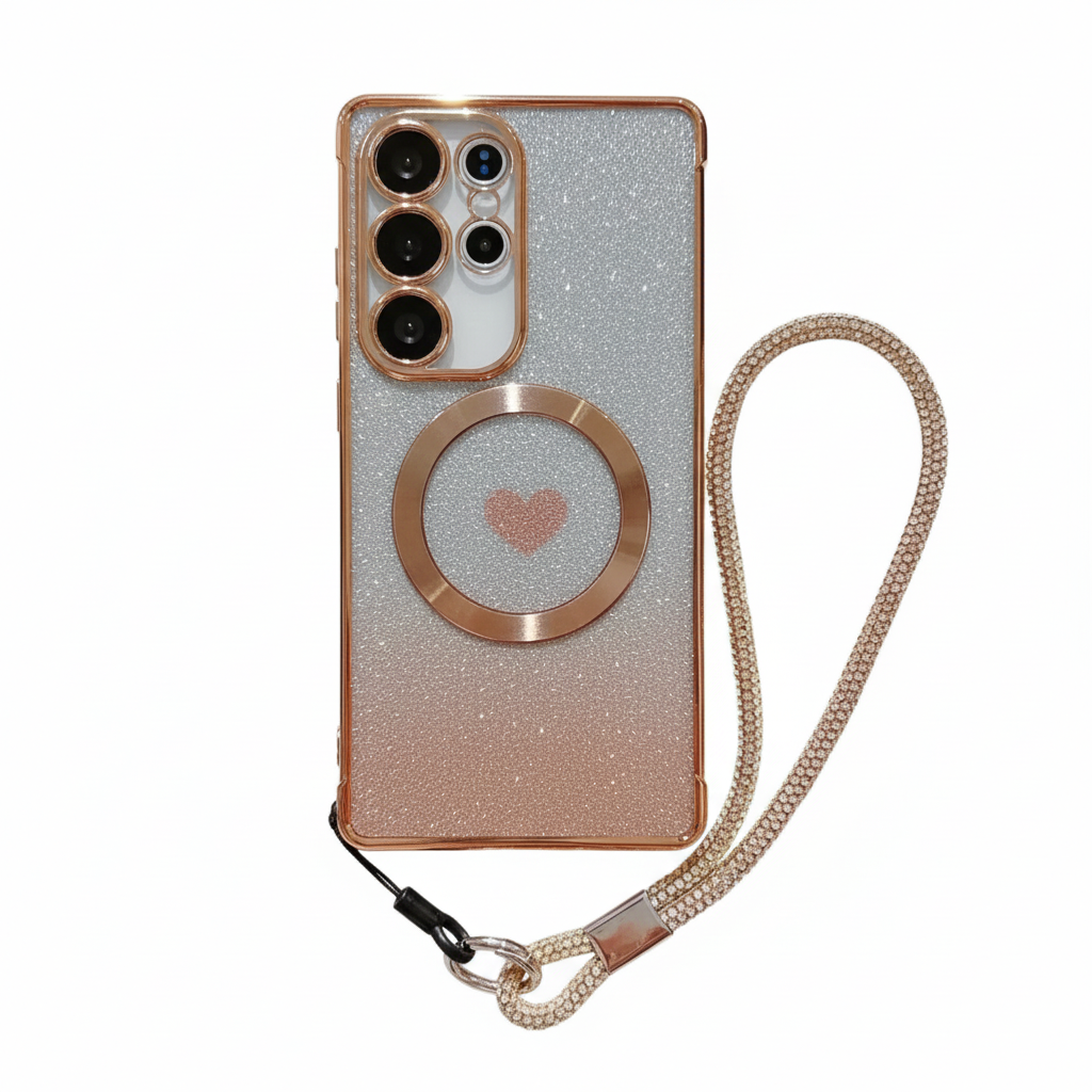 This high-quality wristband/lanyard case is specifically designed for the S25 and S24 models, offering optimal protection and comfort. The design features an elegant glitter effect that gives your device a stylish look.