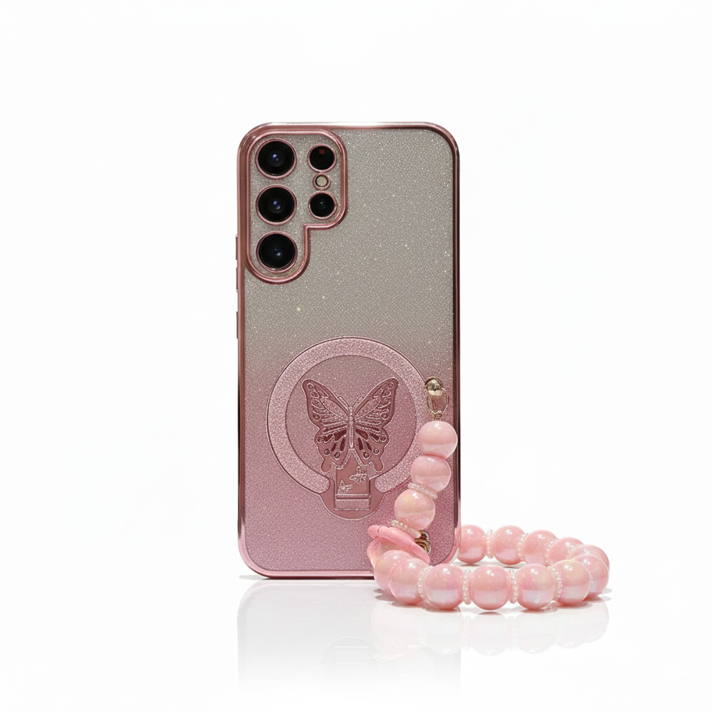 This elegant and stylish glitter phone case with butterfly holder and wrist strap was specially designed for the Samsung Galaxy S24 and S25 Ultra. It combines luxurious design with functional protection and is the ideal accessory for women who value aesthetics and security.