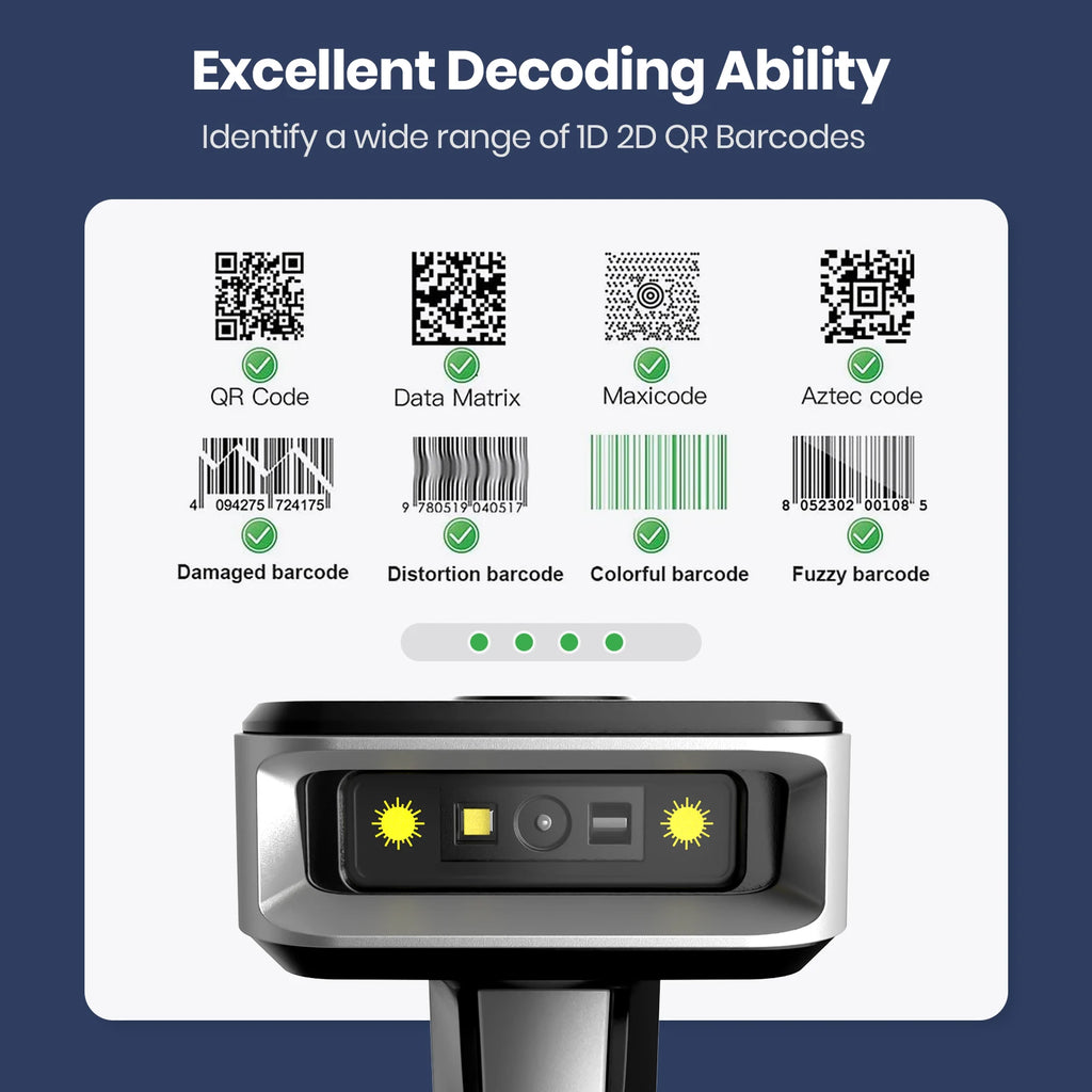 2D Bluetooth Barcode Scanner mit langem Akku für Lager & Zahlung