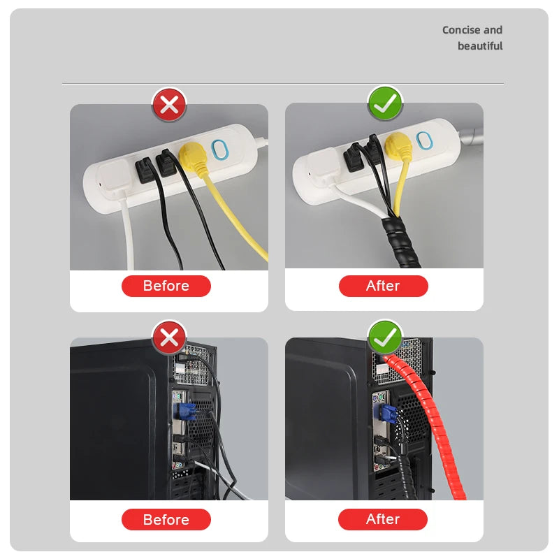 Dank ihrer vielseitigen Länge von 2 Metern lässt sich die Spiralschutz-Hülle leicht zuschneiden und anpassen, um Computerkabel, Netzwerkkabel, USB-Leitungen, Haushaltsgeräteanschlüsse oder industrielle Leitungen zu organisieren. Sie reduziert Kabelsalat, schützt vor Abnutzung und sorgt für einen ordentlichen, professionellen Arbeitsplatz oder Wohnbereich. Die Installation ist einfach: Kabel einfädeln, Spirale überziehen, fertig.