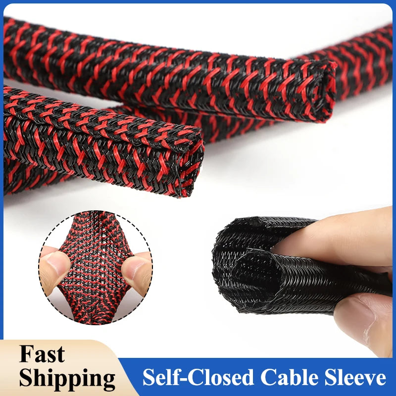 Selbstschließender Rot-Schwarzer PET Kabelschutzschlauch für Kabelmanagement und Kabelorganisation