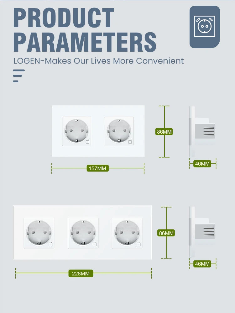 Diese Smart WLAN Wandsteckdose ist ideal für den modernen Haushalt und universelle Anwendungen. Sie verfügt über zwei Steckplätze im EU-Standard, die eine maximale Spannung von 250V und einen maximalen Strom von 16A unterstützen. Das Gerät ist mit Glaspanel, Eisenplatte und Kunststoffmodulen gefertigt, was ein elegantes und langlebiges Design gewährleistet.