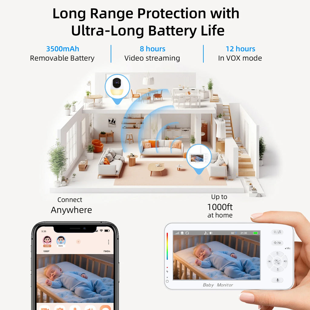 Video Babyphone mit 4.3 Zoll Display, PTZ Kamera, Nachtsicht, Zwei-Wege-Audio und App-Steuerung für sichere Babyüberwachung