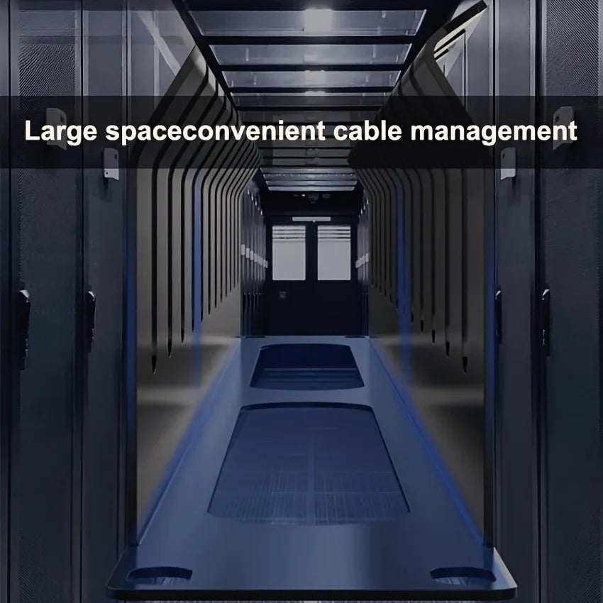 Der Organizer verfügt über einen Fingerkanal mit Abdeckung, der das Eindringen von Staub verhindert und es ermöglicht, Kabel sowohl an den Seiten als auch durch die hinteren Durchgangslöcher leicht zu trennen und zu ordnen. Hergestellt aus kaltgewalztem Stahl mit schwarzer Oberfläche ist das Material rostbeständig, flexibel und langlebig. Die abgerundeten Kanten verhindern ein Beschädigen der Kabel.