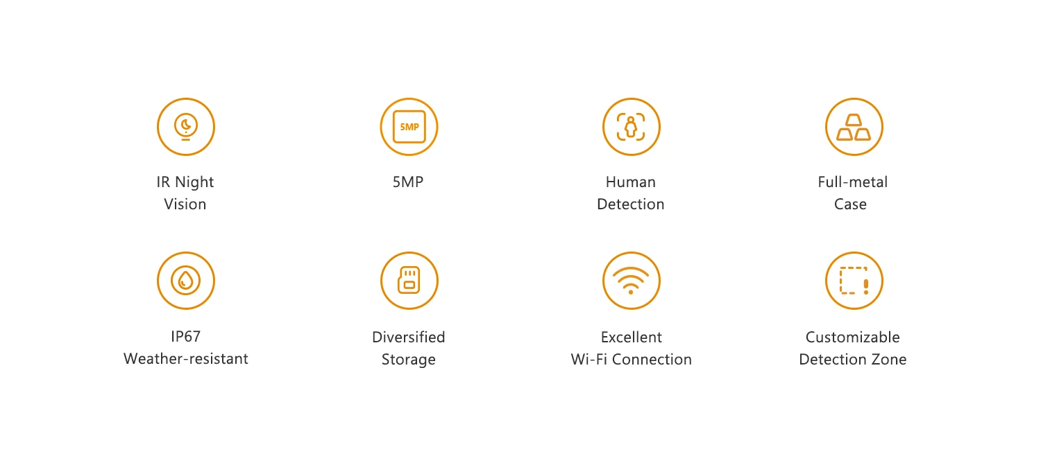 Diese wetterfeste Outdoor-WLAN-Kamera bietet eine hochauflösende 5-Megapixel-Videoqualität mit einem klaren Blickwinkel von bis zu 120°. Sie ist mit einem 2,8 mm oder 3,6 mm Festobjektiv ausgestattet, das flexible Sichtfelder von 102° bis 89° horizontal ermöglicht. Die Kamera verfügt über eine intelligente KI-Funktion zur menschlichen Erkennung, die Bewegungen präzise analysiert und Fehlalarme minimiert.