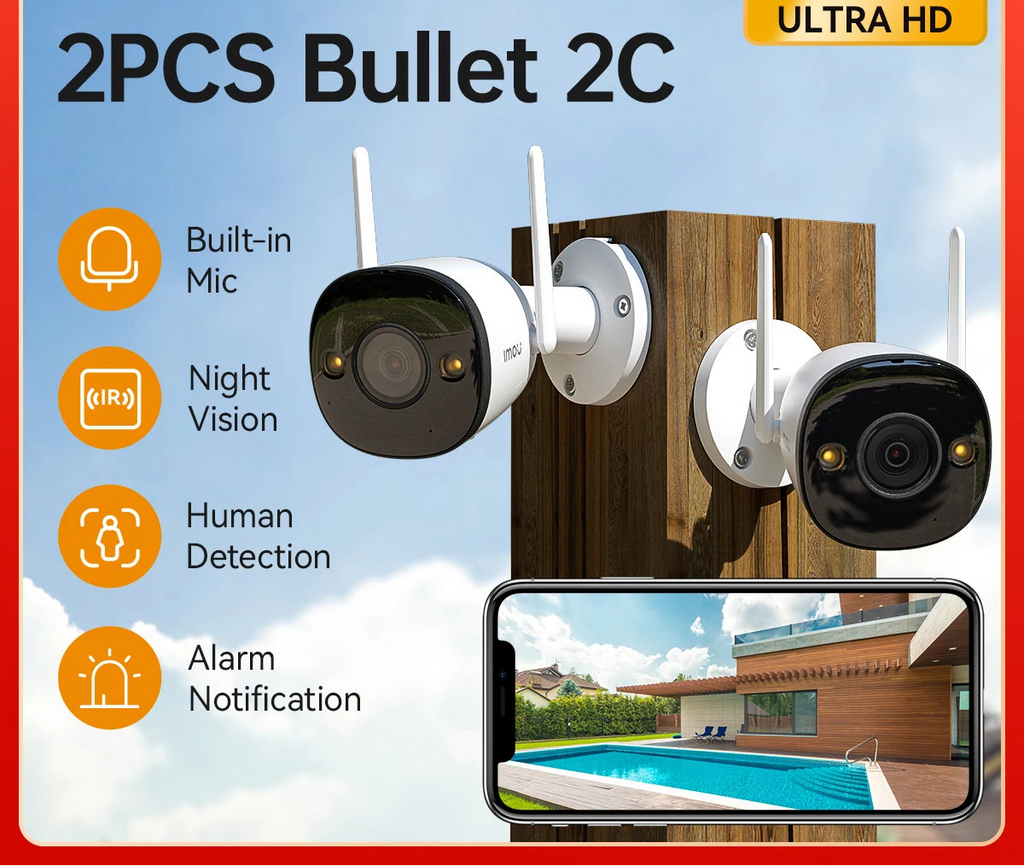 2 Stück 5MP WLAN Kugelkameras IP67 Außen Überwachung