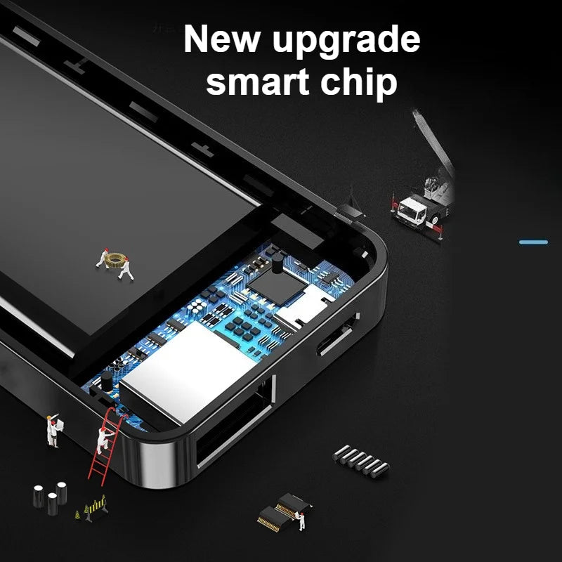 Die Powerbank verwendet einen hochwertigen Li-Polymer-Akku und verfügt über ein robustes Gehäuse aus ABS und PC-Kunststoff, das langlebig und widerstandsfähig ist. Mit einem kompakten Format von 87,5 mm x 44,2 mm x 13,5 mm passt sie bequem in jede Tasche.