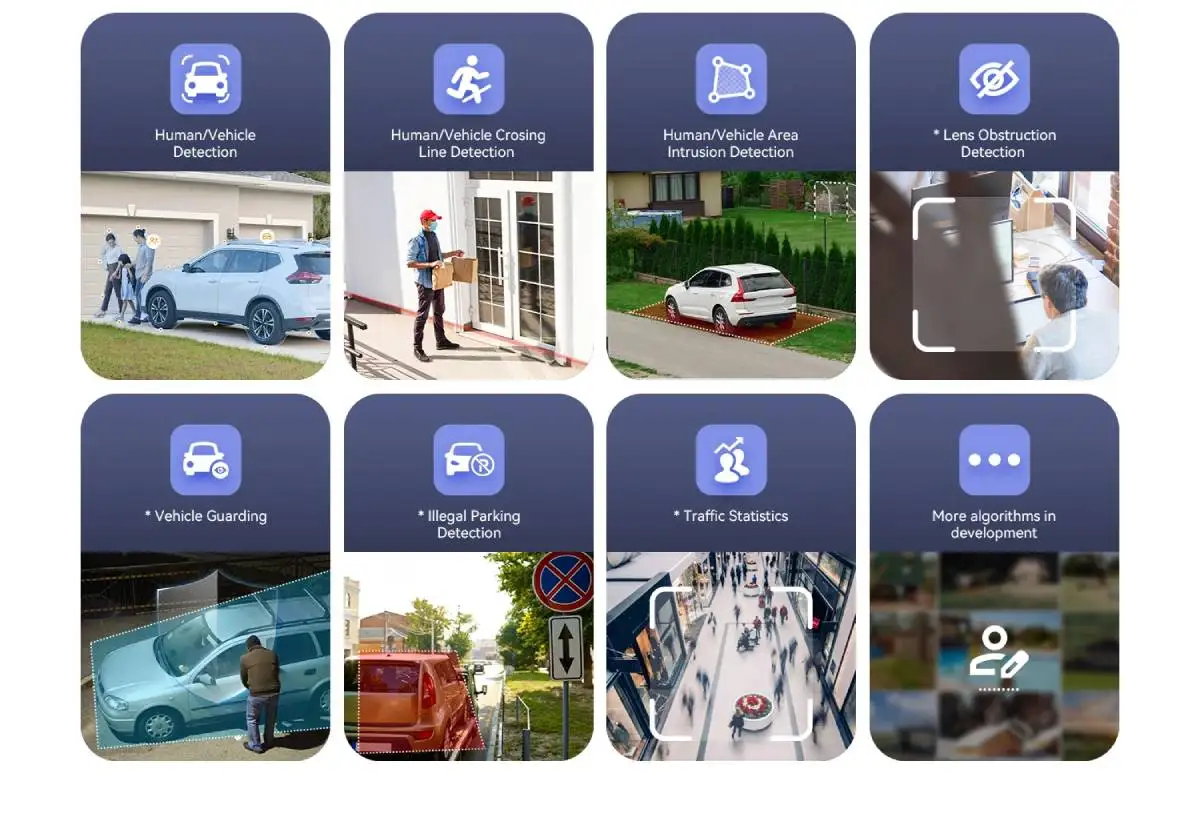 Diese vielseitige und leistungsstarke Kamera ist perfekt für die Überwachung von Außenbereichen wie Hauseingängen, Einfahrten oder Geschäftsräumen und bietet dank intelligenter Funktionen ein hohes Maß an Sicherheit.