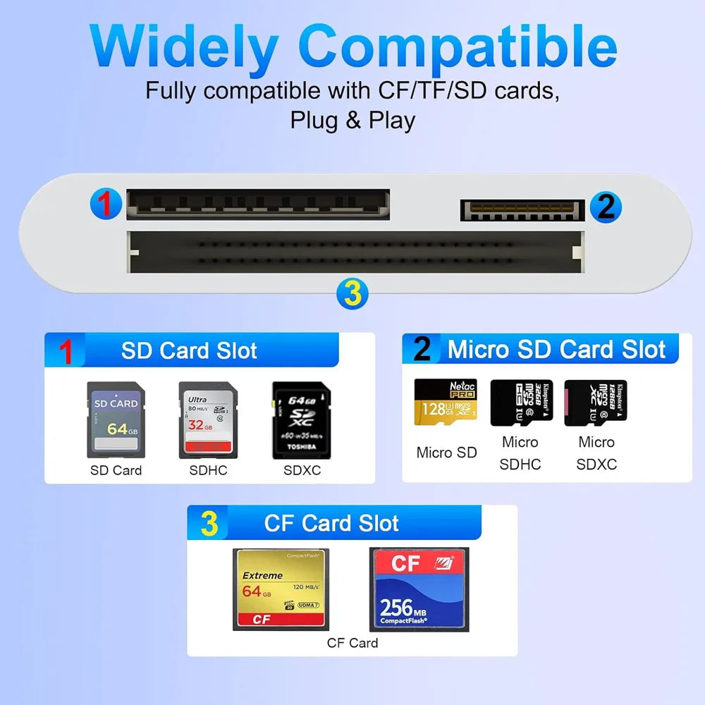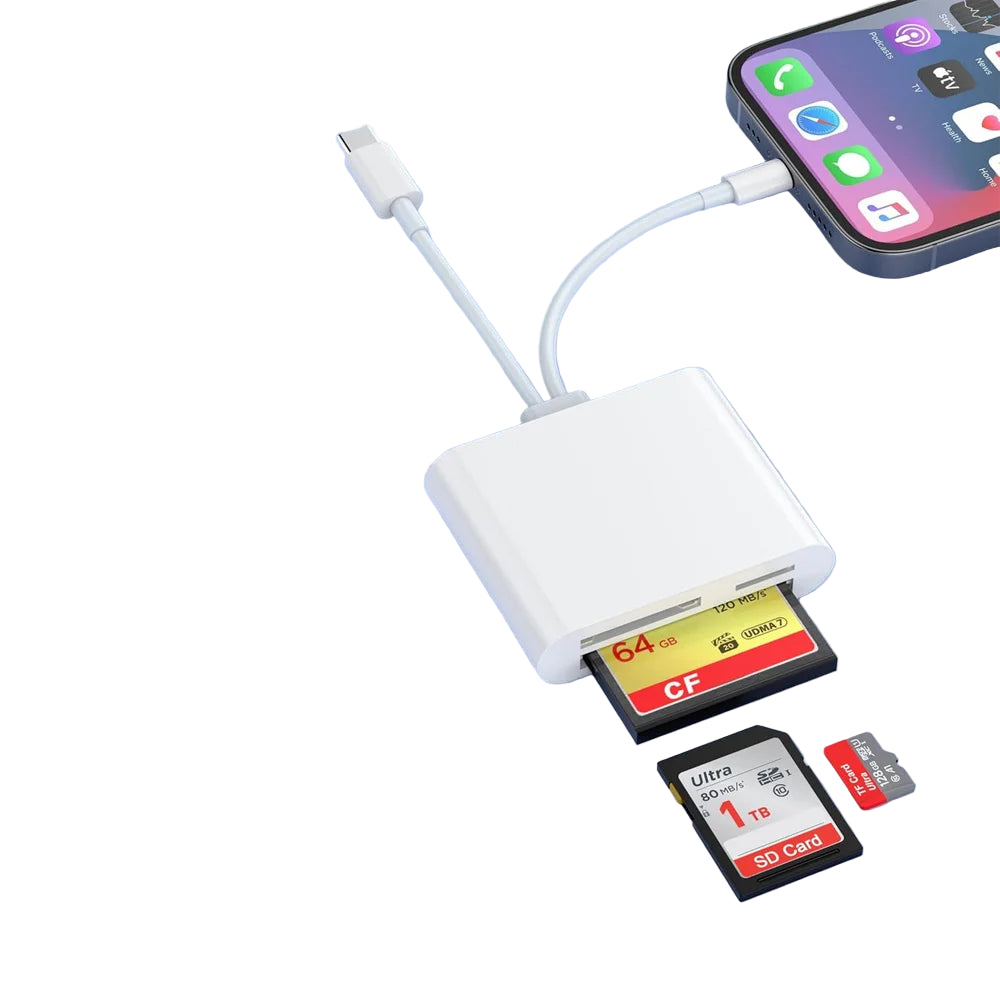 3-in-1 SD TF CF Kartenleser Lightning & Typ-C Adapter für iPhone, iPad, MacBook – Schnelle Datenübertragung