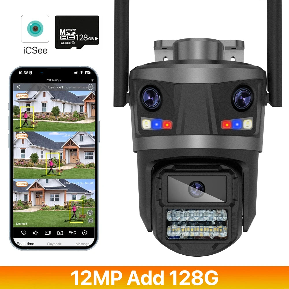 3-Linsen WLAN Außenkamera 12MP mit AI-Erkennung