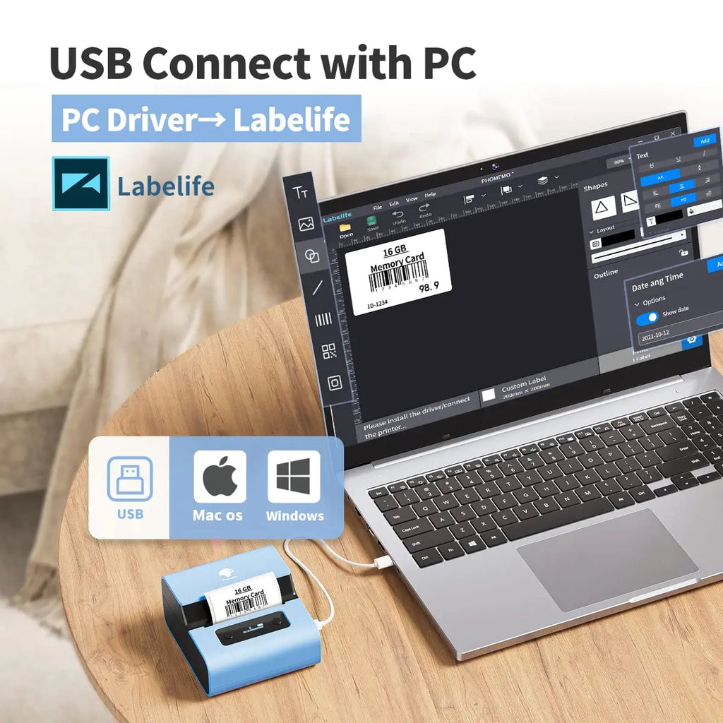 Der Phomemo M221 3‑Zoll Bluetooth Etikettendrucker ist bestens geeignet für kleine Unternehmen und das Heimbüro. Mit einer Druckbreite von 20–75 mm und einer Auflösung von 203 dpi bietet er flexible Einsatzmöglichkeiten – von Adress‑ und Barcodeetiketten bis zu Produkt‑, Kabel‑ oder Schmuckaufklebern. Die Verbindung erfolgt stabil über Bluetooth 4.2 (innerhalb von ca. 2 Sekunden verbunden), zusätzlich ist eine USB‑Schnittstelle für Mac und Windows eingebaut.