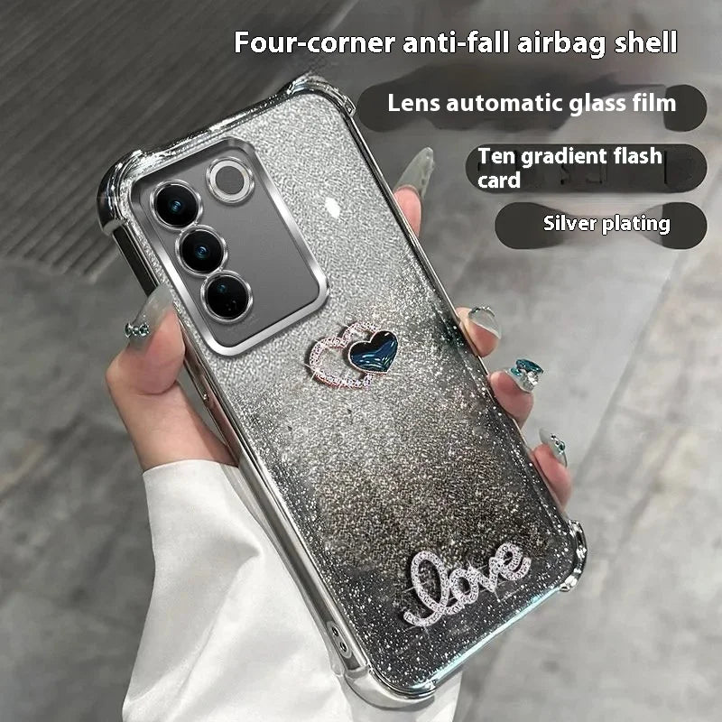 3D Love Glitzer Hülle für Samsung Galaxy S25 Stoßfest