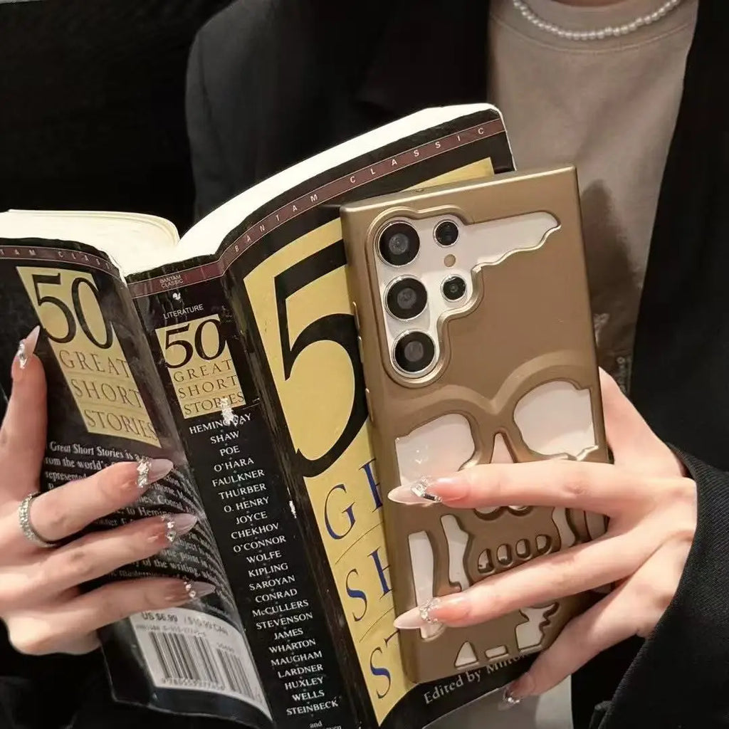 Luxuriöse 3D Matte Metallic Totenkopf Hülle – Stoßfestes Hardcase für Samsung Galaxy S23 S24 Ultra Plus