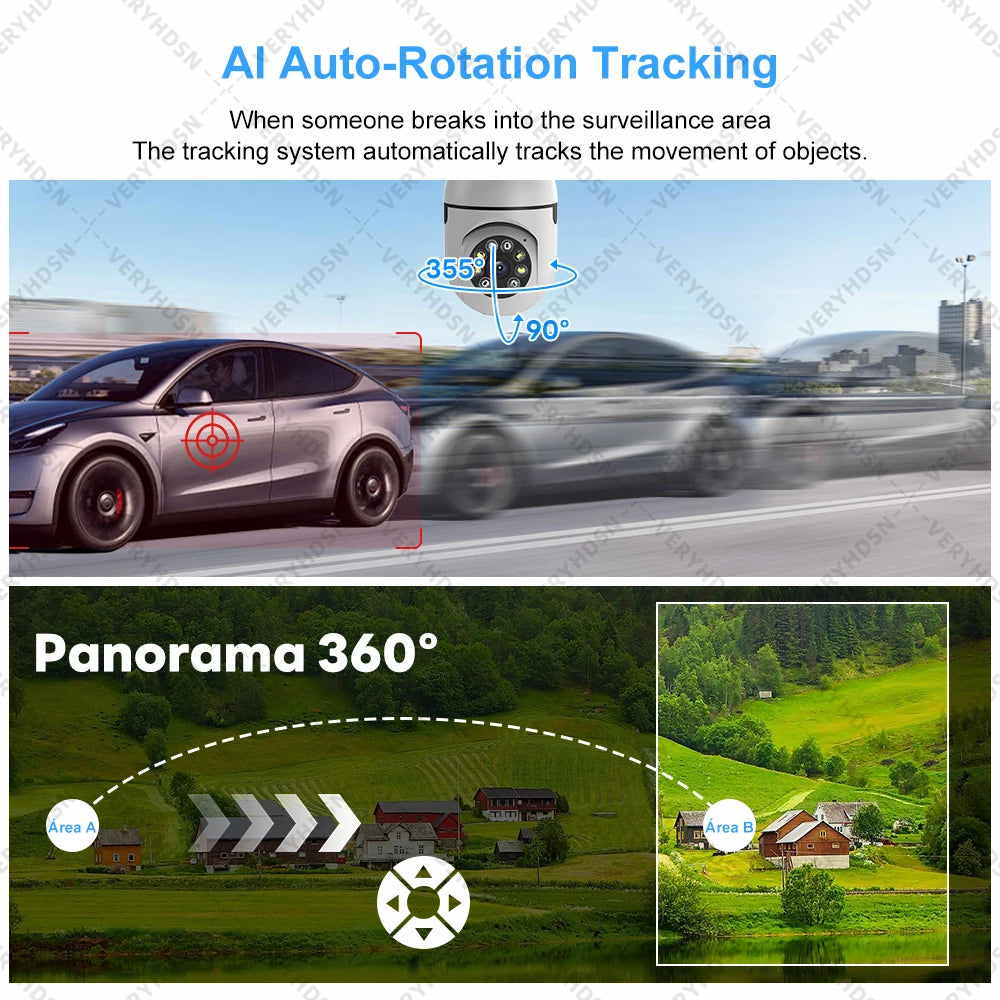 Diese 3MP WLAN IP Überwachungskamera bietet hochauflösende Videoaufnahmen mit einer Auflösung von 3 Megapixeln und einem 4-fachen digitalen Zoom für detaillierte Überwachungsbilder. Die Kamera verfügt über eine 360° Schwenk- und Neigefunktion, sodass Sie nahezu jeden Winkel Ihres Überwachungsbereichs abdecken können. Mit integrierter KI-basierter menschlicher Erkennung wird jede Bewegung präzise erkannt, und Sie erhalten sofort eine Benachrichtigung auf Ihr Smartphone.