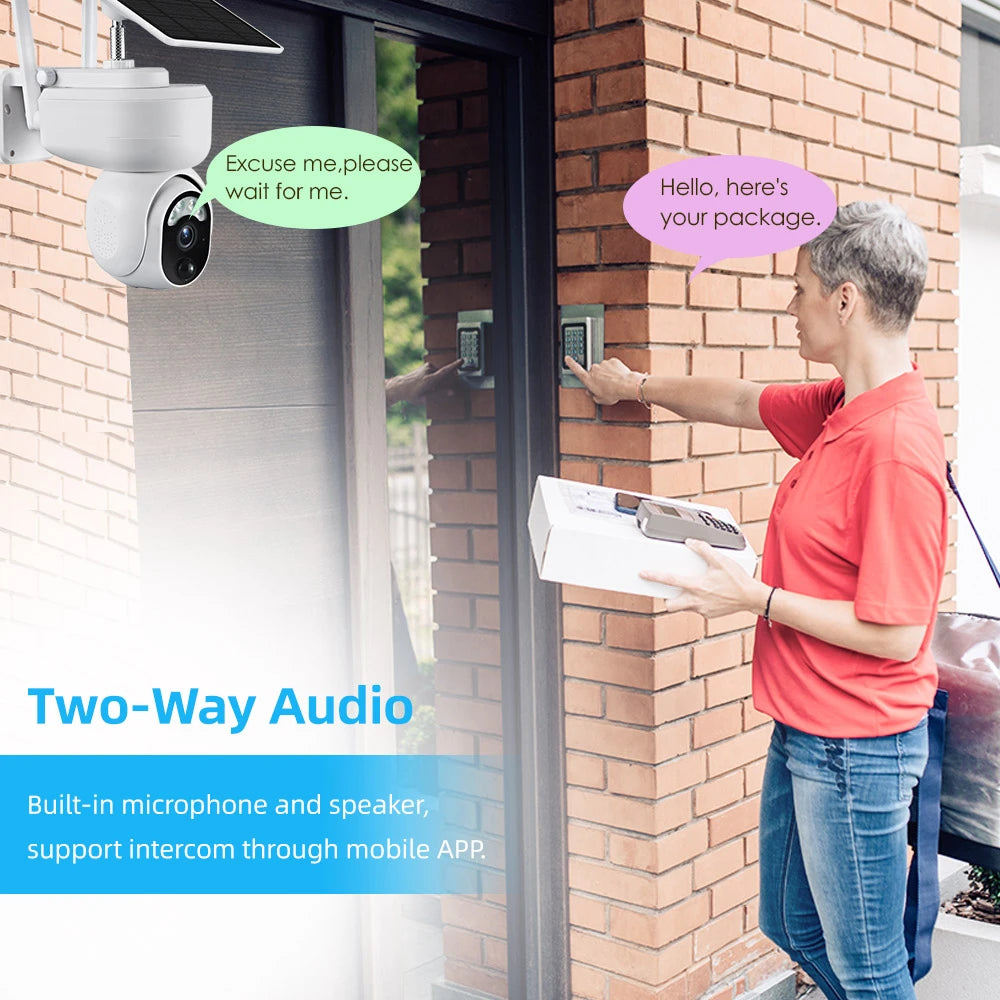 Mit 360° PTZ-Funktion (355° horizontal, 100° vertikal) ermöglicht sie eine umfassende Überwachung. Die 2-Wege-Audiofunktion erlaubt Kommunikation in Echtzeit über Mikrofon und Lautsprecher. Die Kamera unterstützt Cloud-Speicher sowie TF-Karten bis 256 GB und bietet eine einfache Fernsteuerung und Wiedergabe via UBox-App.