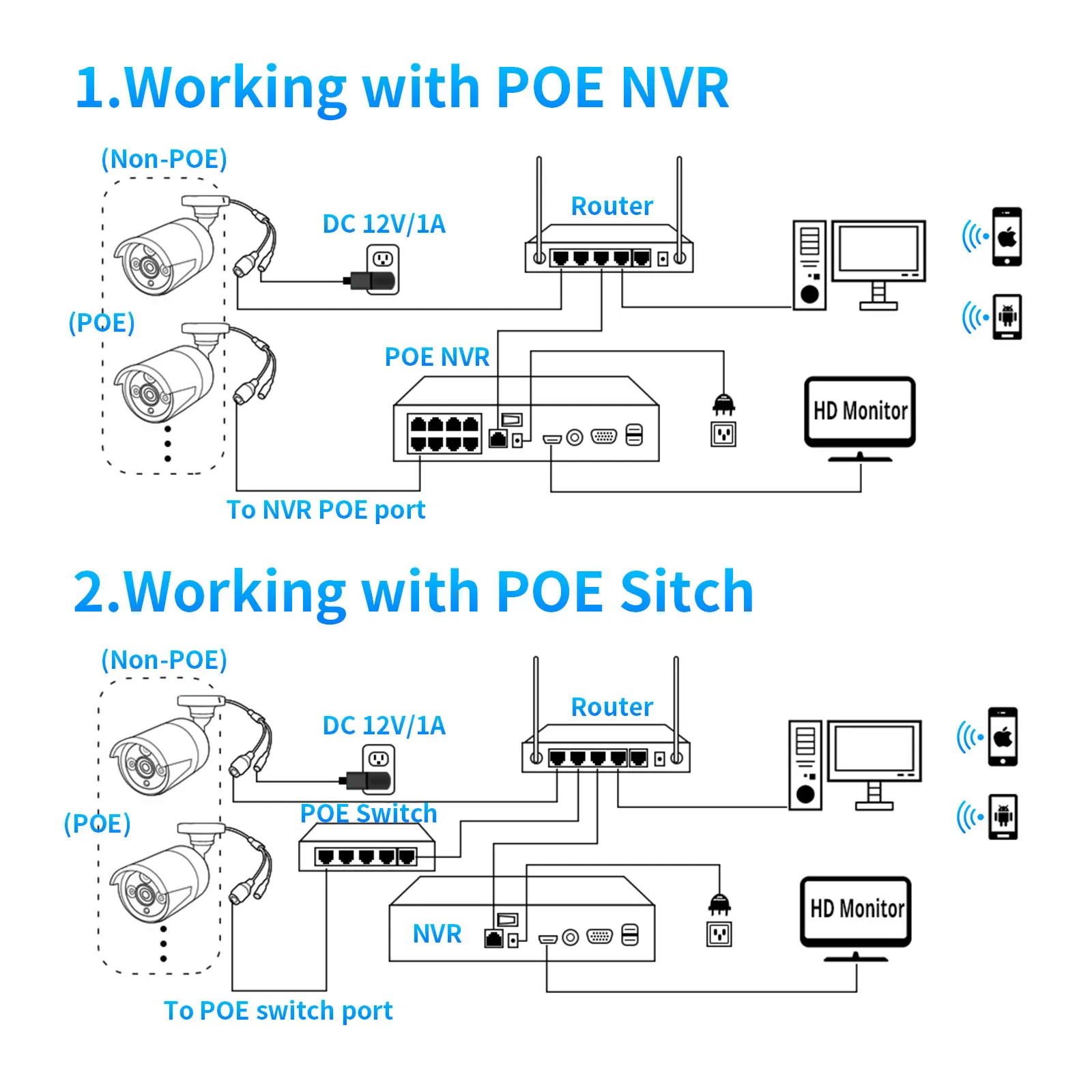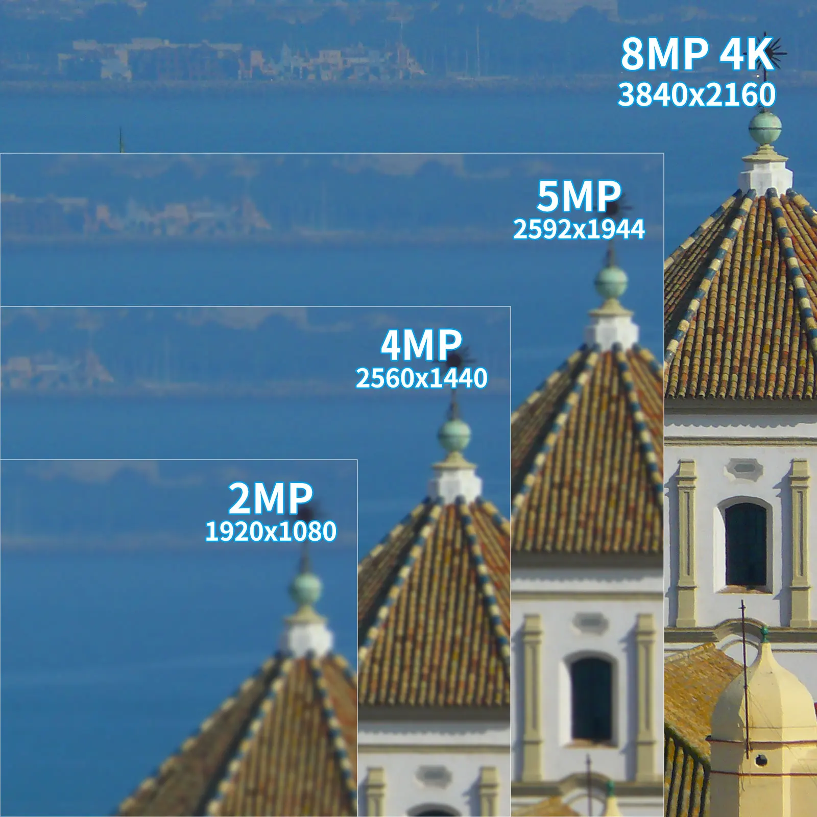 Diese 8MP 4K IP POE Kamera bietet professionelle Überwachung für den Innen- und Außenbereich. Mit einer Auflösung von 3840 x 2160 Pixeln liefert sie gestochen scharfe Ultra-HD-Bilder – ideal für den Schutz von Haus, Büro, Lager oder Geschäft. Im Vergleich zu 720p oder 1080p Kameras werden selbst kleinste Details klar erkannt.