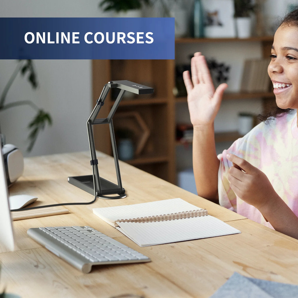 Das tragbare und flexible Design mit mehreren Gelenken ermöglicht es, die Kamera kompakt zusammenzufalten und überall zu transportieren. Mit nur 0,6 Pfund Gewicht eignet sie sich ideal für Online-Meetings, Fernunterricht, Live-Demos oder Präsentationen von unterwegs. Die 3-stufig einstellbare LED-Beleuchtung sorgt für perfekte Ausleuchtung und die integrierten Doppelmikrofone liefern klare Audioqualität, selbst in geräuschvollen Umgebungen.