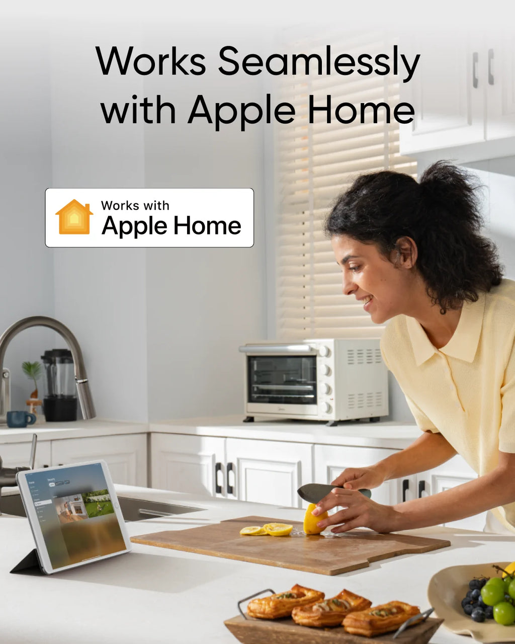 Die Kamera ist kompatibel mit Google Assistant, Alexa sowie Apple Home (mit 1080P-Auflösung über HomeKit Secure Video) und lässt sich vollständig per App steuern. Das Gerät unterstützt WLAN mit 5 GHz und ist durch die Schutzklasse IP67 bestens für den Außeneinsatz geeignet.