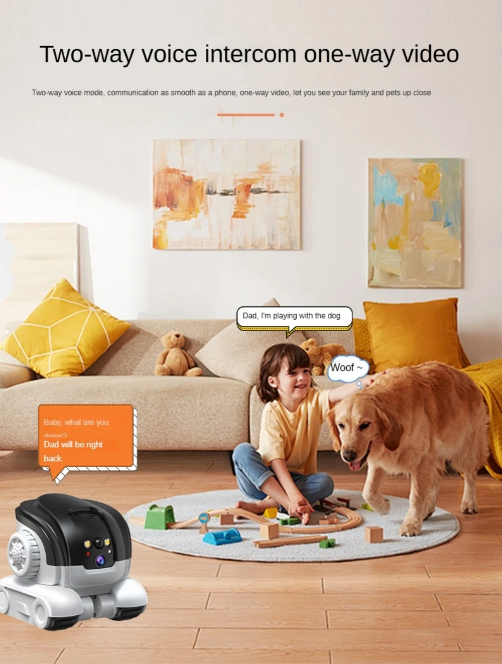 Die Verbindung erfolgt über schnelles 5G-WLAN, wodurch eine stabile und zuverlässige Übertragung gewährleistet ist. Die Kamera ist als Roboter-Kamera gestaltet, was flexible Bewegung und Schwenkfunktionen erlaubt, um verschiedene Bereiche eines Raums optimal zu überwachen.