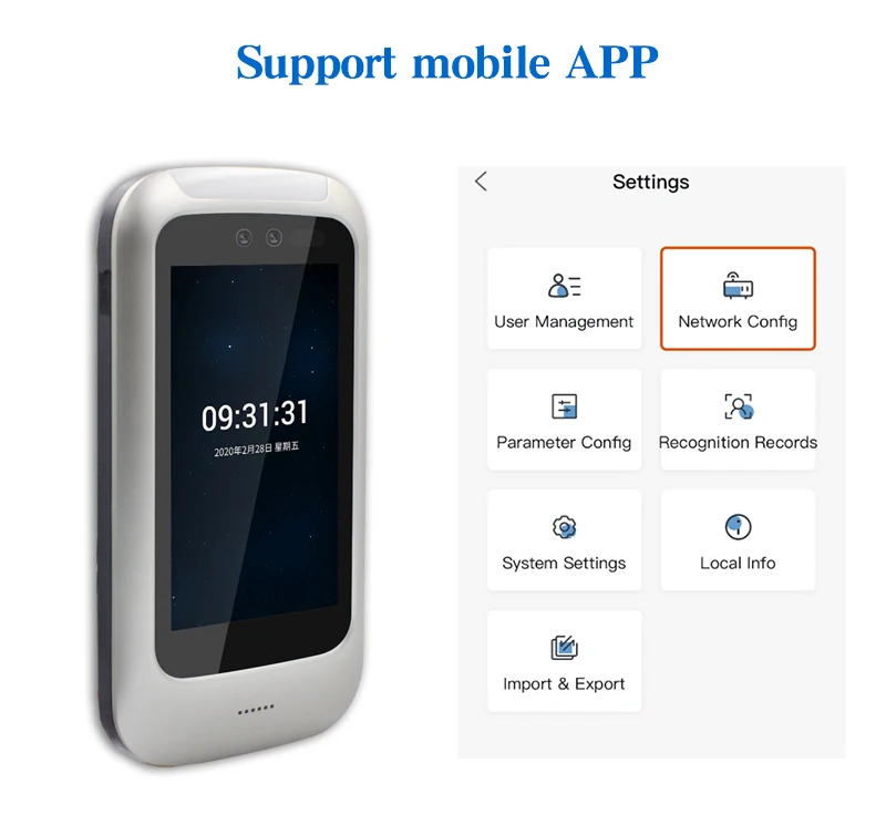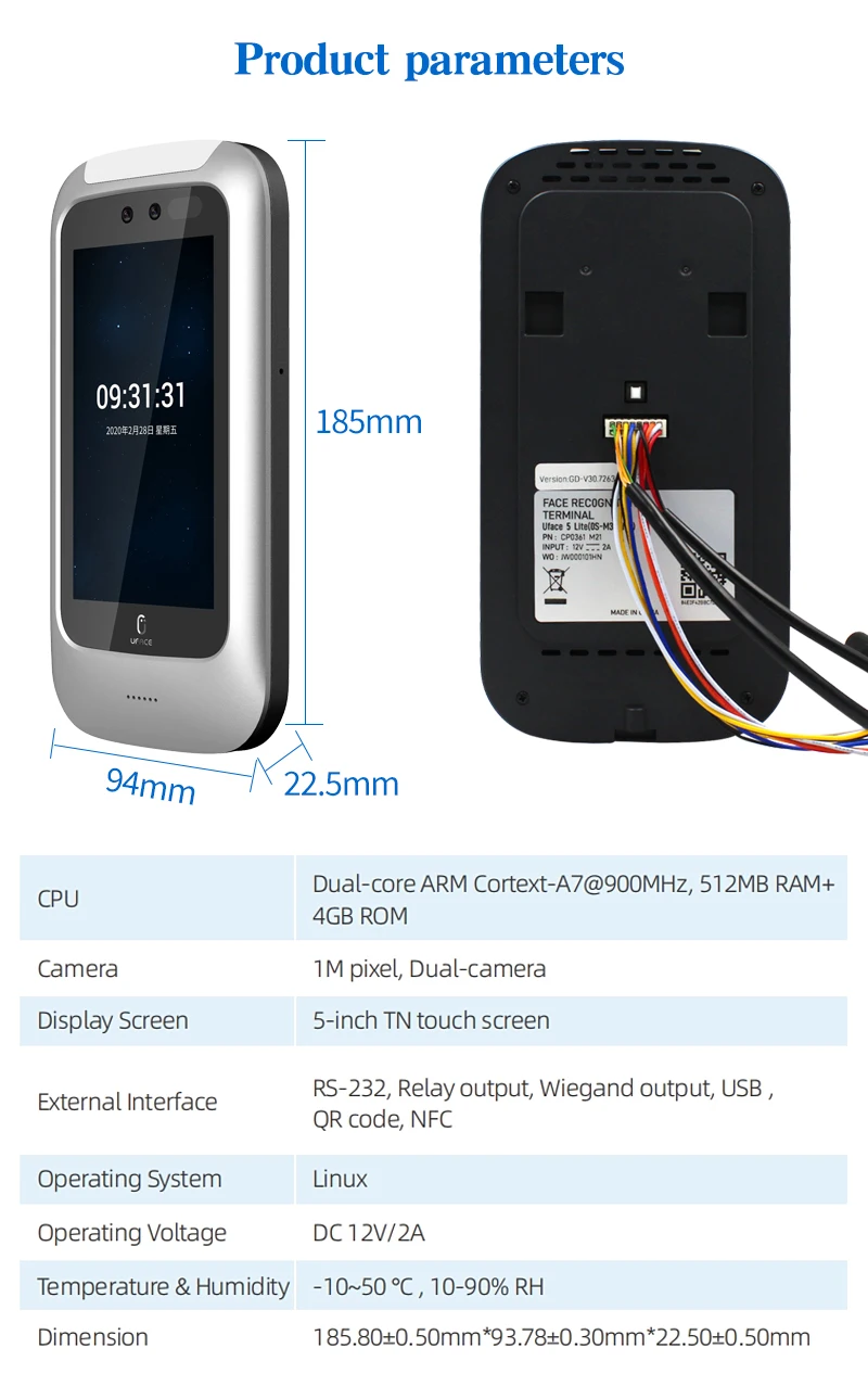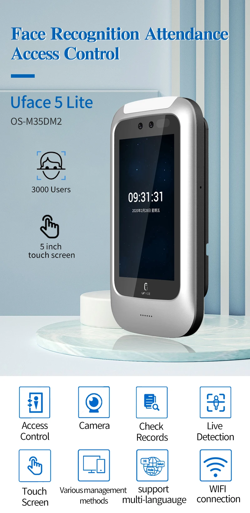 Das Gerät unterstützt bis zu 3.000 Bildbenutzer und arbeitet mit der 13,56 MHz IC‑Karte (Mifare) als Alternative oder Ergänzung zur Gesichtserkennung. Die Gesichtserkennung ist auch maskensicher – das heißt, das Gerät kann Personen selbst mit Mundschutz identifizieren.