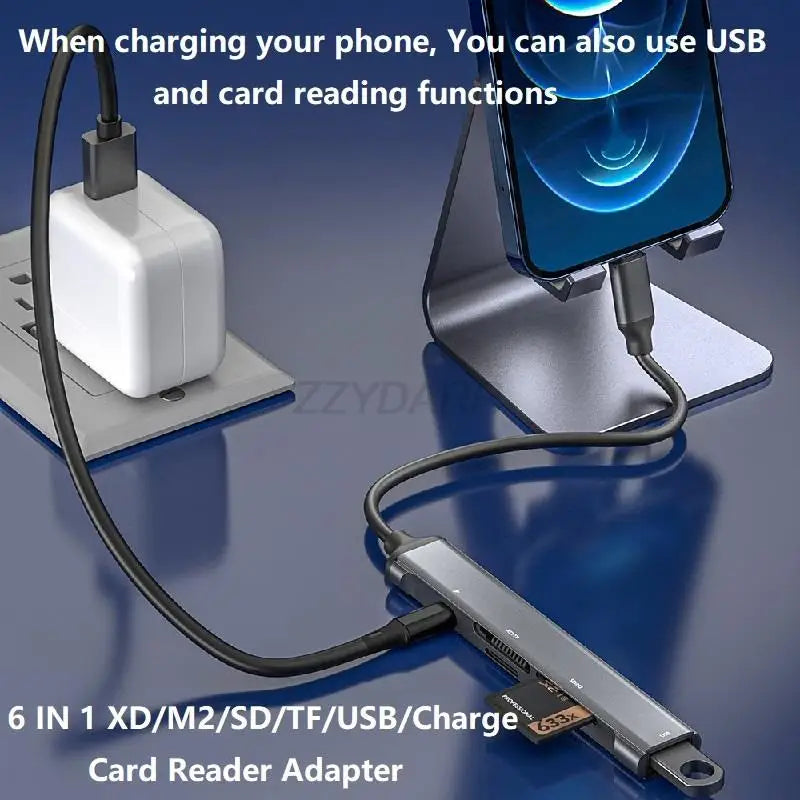 6-in-1 Kartenleser Typ C Lightning Adapter für iPhone, iPad und Laptop – Schnellübertragung und gleichzeitiges Laden