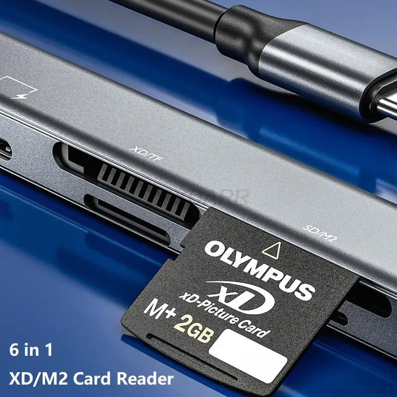 Dieser 6-in-1-Kartenleser ist eine vielseitige Lösung für Benutzer, die mehrere Speicherkartenformate auf verschiedenen Geräten lesen und übertragen möchten. Mit Anschlüssen für SD-, TF-, XD-, M2-, Micro SD- und SDHC-Karten bietet er umfassende Kompatibilität und unterstützt eine schnelle Datenübertragung von bis zu 480 Mbit/s.