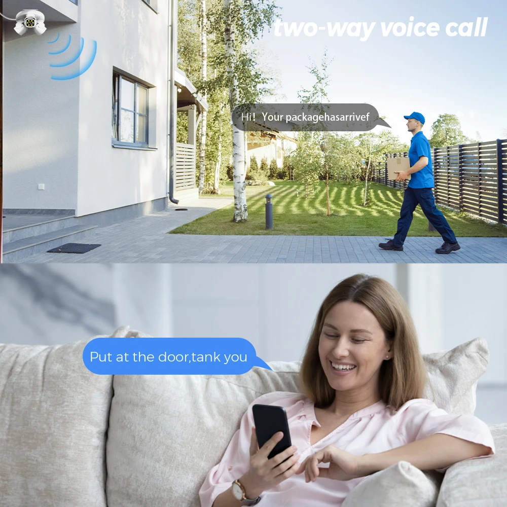 Eine Zwei-Wege-Audiokommunikation ermöglicht es, jederzeit per Mikrofon und Lautsprecher über die Kamera mit Personen vor Ort zu sprechen. Die Kamera unterstützt mehrere Installationsarten, wie Decken- oder Wandmontage, und ist mit einer IP66-Zertifizierung gegen Wasser und Staub geschützt, was den Einsatz im Freien sicherstellt.