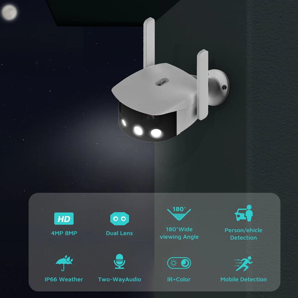 8MP WLAN Dual-Lens IP Kamera 180° mit KI und Nachtsicht