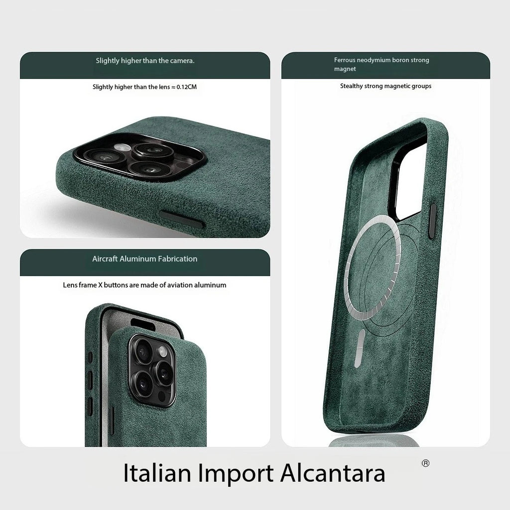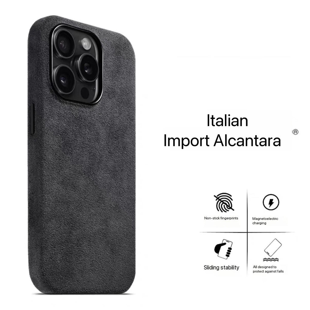 Premium Alcantara iPhone 17 Hülle – MagSafe-kompatibel, Handgefertigt, Vollschutz mit Mikrofaser-Innenfutter