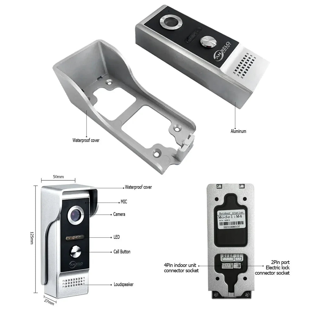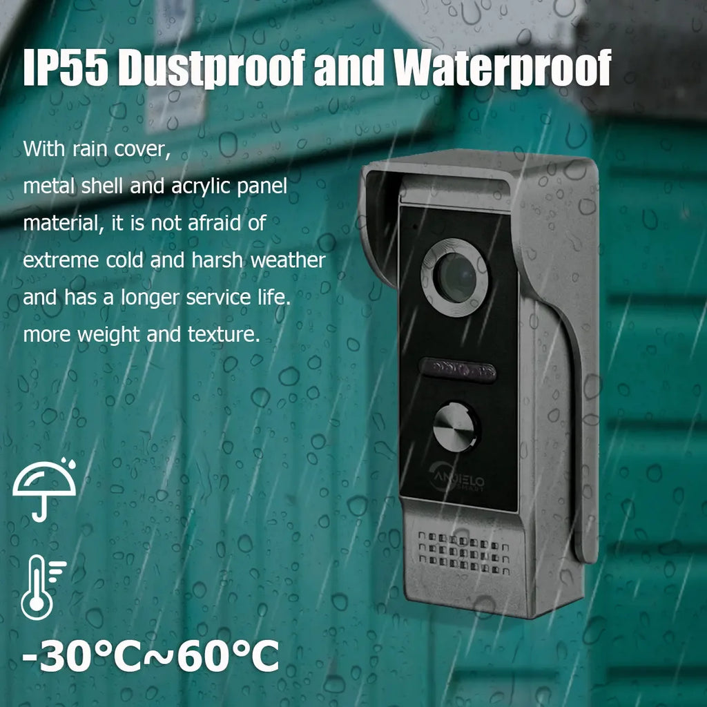 Die Außen türklingel ist mit einer Aluminium-Frontplatte zum Schutz vor Vandalismus gebaut, während die Abdichtung vor Regen oder Schnee schützt. Mit einer regen festen Abdeckung, um das Wasser zu verhindern und die Außen kamera vor Beschädigungen zu schützen.