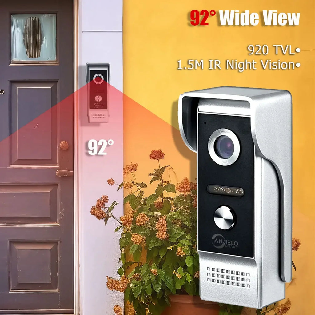 Die Anjielo Türklingel mit Kamera ist die ideale Lösung für mehr Sicherheit und Komfort an Ihrer Haustür. Dank Aluminiumgehäuse, integrierter Nachtsichtfunktion und hochwertigem CMOS-Sensor bietet sie gestochen scharfe Videoqualität – selbst bei schlechten Lichtverhältnissen. Die Türklingel ist für die Wandmontage geeignet und wird per Kabel verbunden. Sie ist ausschließlich in Kombination mit einem passenden Innenmonitor nutzbar.