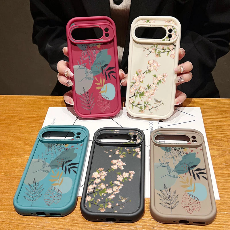 Blumen Silikonhülle für Google Pixel 9/9 Pro, Stoßfest & Rutschfest