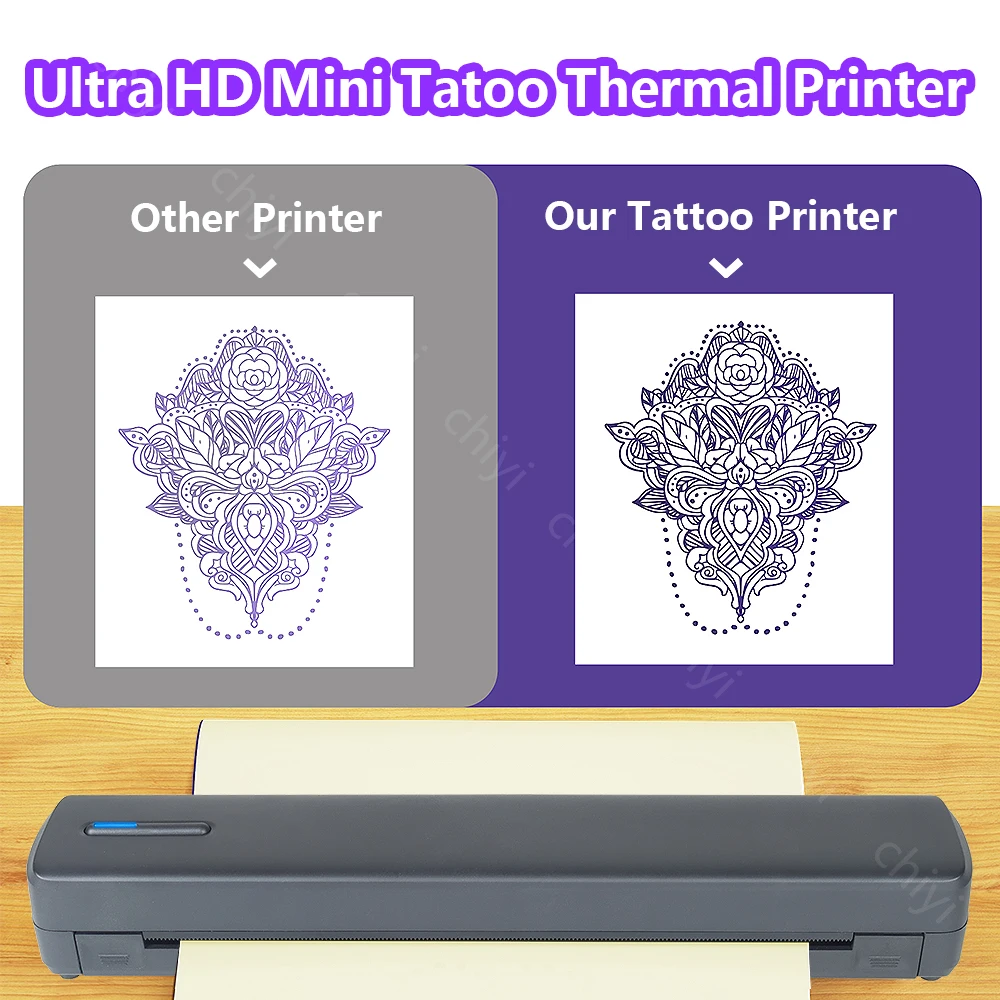 Der CHIYI C80 Tattoo-Schablonendrucker ist ein leistungsstarker, tragbarer A4-Thermodrucker, der speziell für professionelle Tätowierer entwickelt wurde. Dank der kabellosen Bluetooth-Verbindung und USB-Unterstützung kannst du ihn flexibel mit deinem Smartphone, Tablet (iOS/Android) oder PC nutzen – ideal für den Einsatz im Studio oder mobil vor Ort.