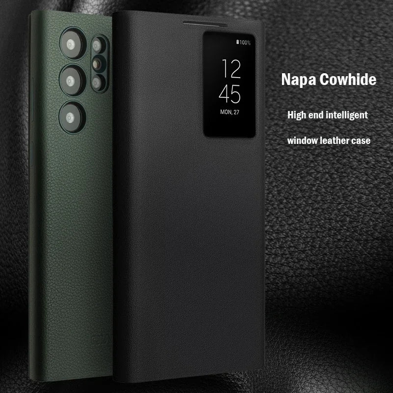 Echtes Leder Smart Case für Galaxy S23 Ultra