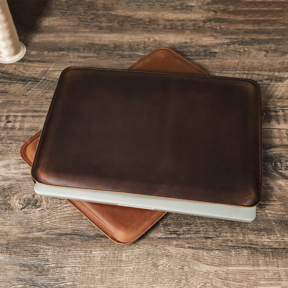 Die KONTAKTE FAMILIE Echtleder-Laptop-Hülle ist eine hochwertige und stilvolle Schutzhülle für MacBook Pro und Air Modelle von 13 bis 16 Zoll sowie für Laptops von HP, Dell und XPS. Hergestellt aus 100% echtem Rindsleder, bietet diese Hülle optimalen Schutz vor Kratzern, Staub und leichten Stößen, während sie gleichzeitig einen eleganten Vintage- und Retro-Look vermittelt.