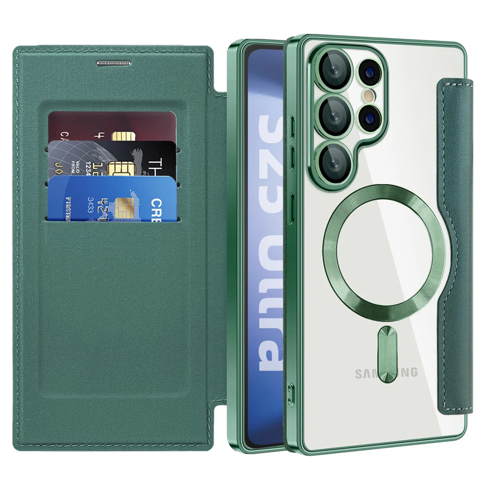 Flip Lederhülle für Samsung S24 S25 Ultra mit Magnetfunktion