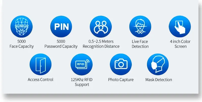 Das Gerät nutzt Linux 4.19 als Betriebssystem und wird von einer ARM Cortex‑A7 CPU (800 MHz) mit einem NPU (800G Rechenleistung) unterstützt, um schnelle und zuverlässige Gesichtserkennung zu ermöglichen. Mit einem Algorithmus, der auf einem Multi‑Task kaskadierten neuronalen Netzwerk basiert, bietet das Gerät dynamische Gesichtserkennung, Gesichtstracking und Anti‑Spoofing‑Schutz gegen täuschende Bilder oder Videos.
