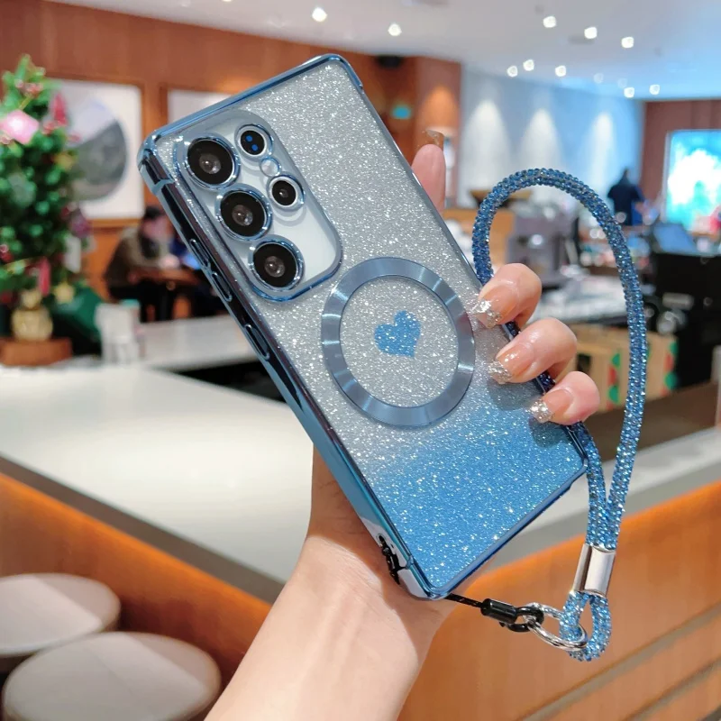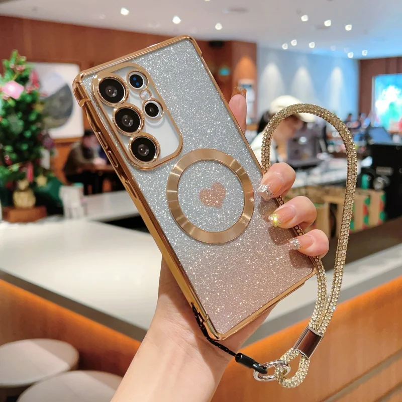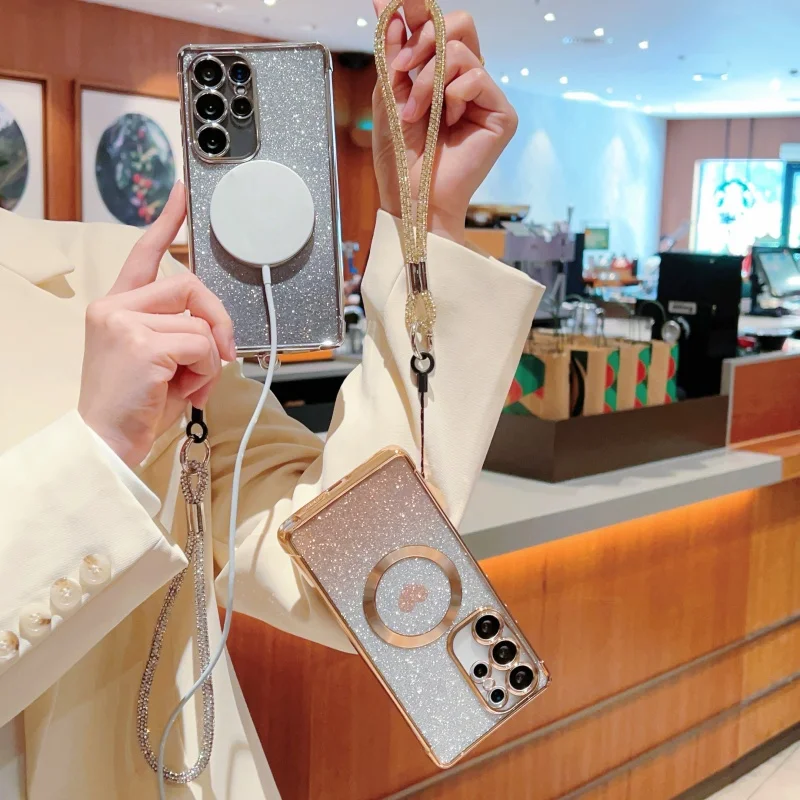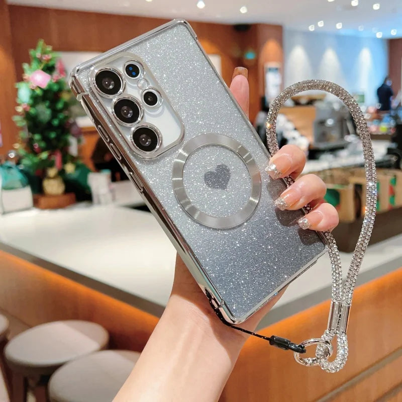 Stylisches und robuster Armband-Case für S25 & S24 – Glitzer-Design, Magnetisch & Schockfest