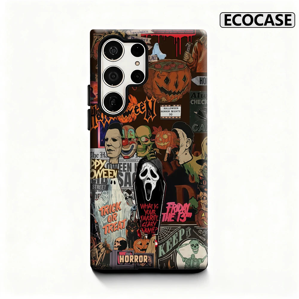 Gruselige Halloween Horror Handyhülle für Samsung Galaxy S25 S24 S23 Ultra – Glänzender Stoßschutz mit Doppel-Layer