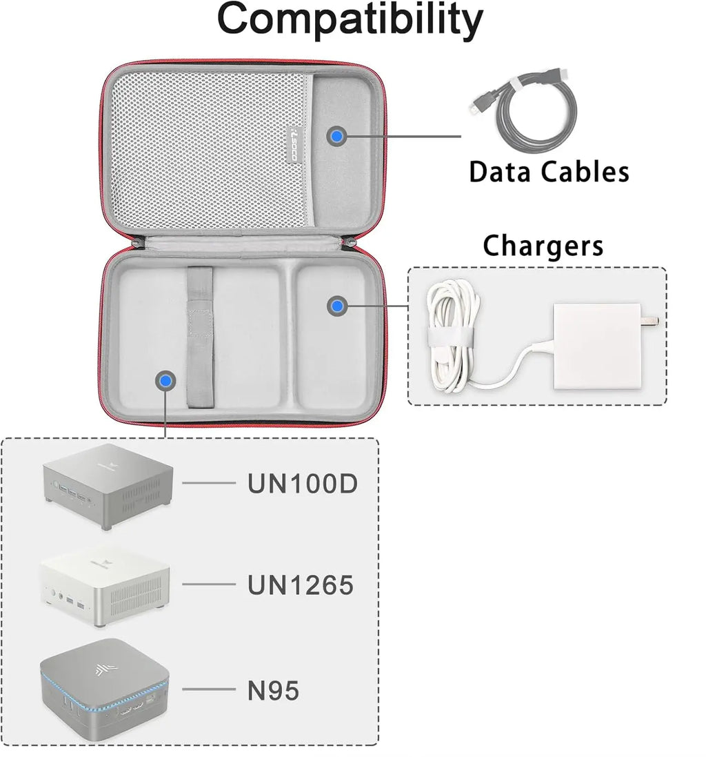 Herausragender Schutz Diese extrem robuste Hülle verfügt über ein intelligentes Innendesign mit integriertem Haltegurt. Ihr Mini-PC bleibt fest an seinem Platz und wird effektiv vor Stürzen, Stössen und Quetschungen geschützt. Die massgeschneiderten Aussparungen sorgen dafür, dass sowohl der Computer als auch Kabel oder Netzteile sicher verstaut sind.