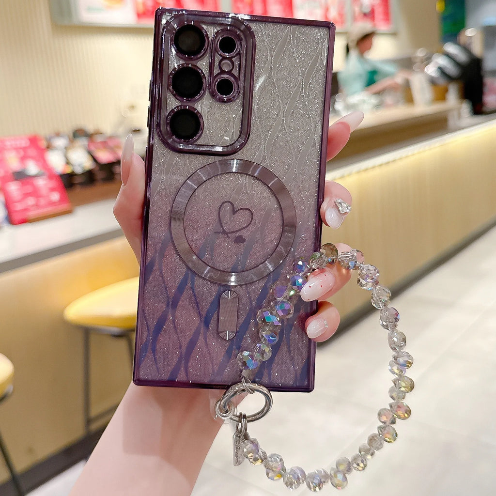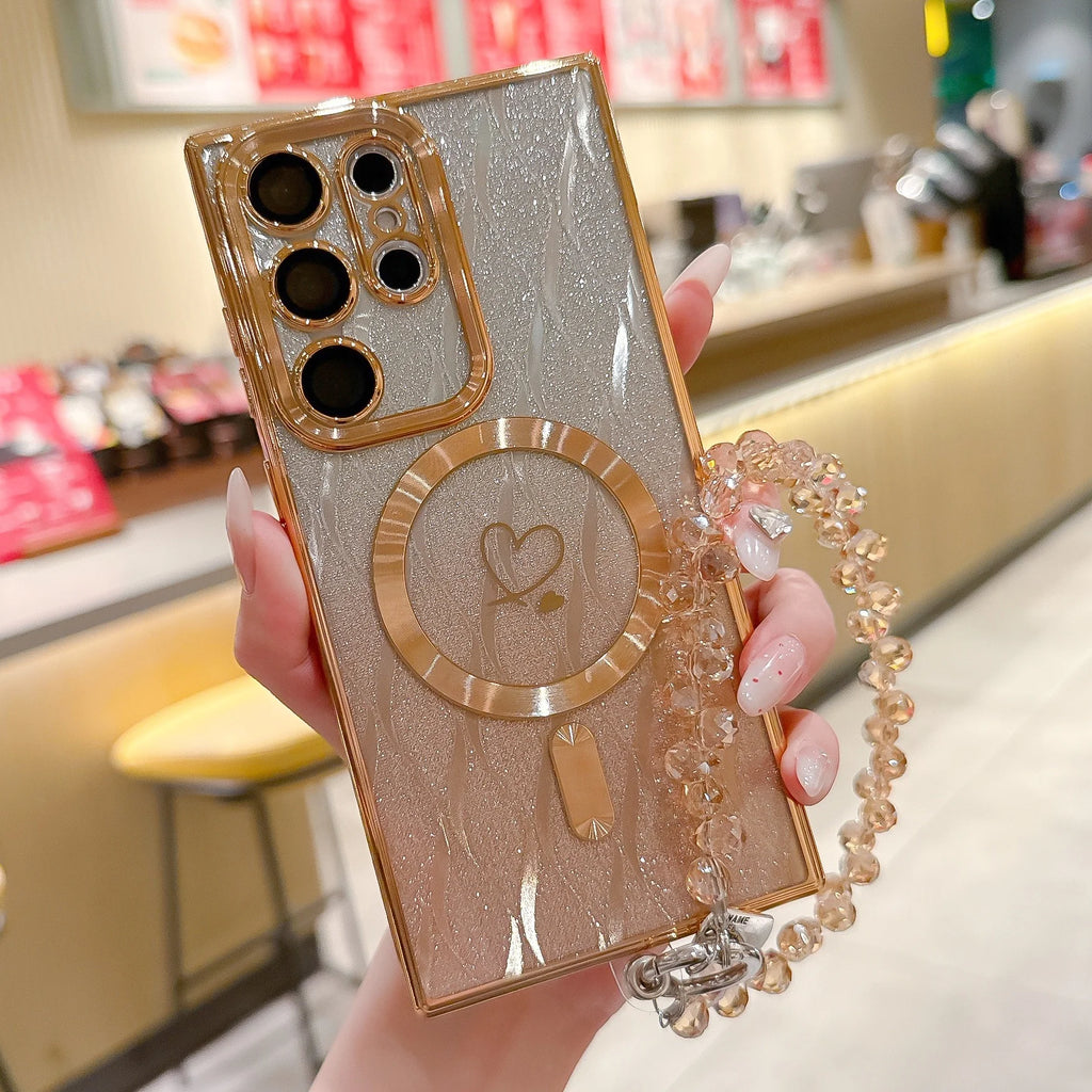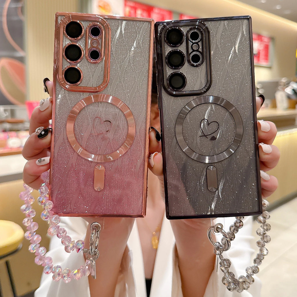 Luxus Herz Glitzer Armband Hülle für Samsung S25 Ultra – Magnetisches Farbverlauf Cover mit elegantem Schutz