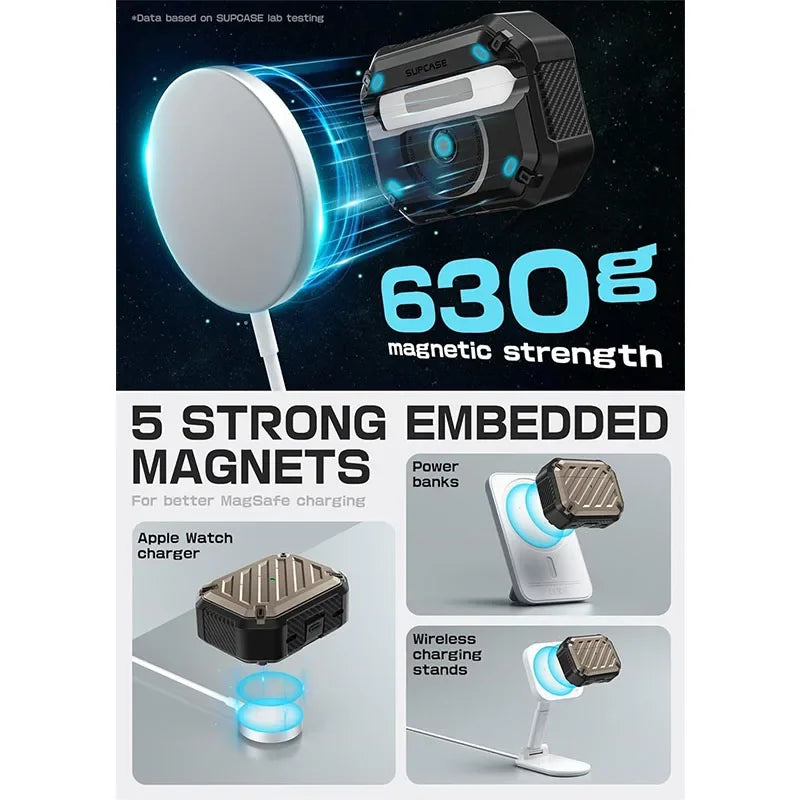 Der integrierte Karabiner ermöglicht das sichere Befestigen an Rucksack oder Schlüsselbund, sodass die Hülle unterwegs stets griffbereit bleibt. Präzise Aussparungen gewährleisten freien Zugang zu Ladeanschluss und Status‑LED.