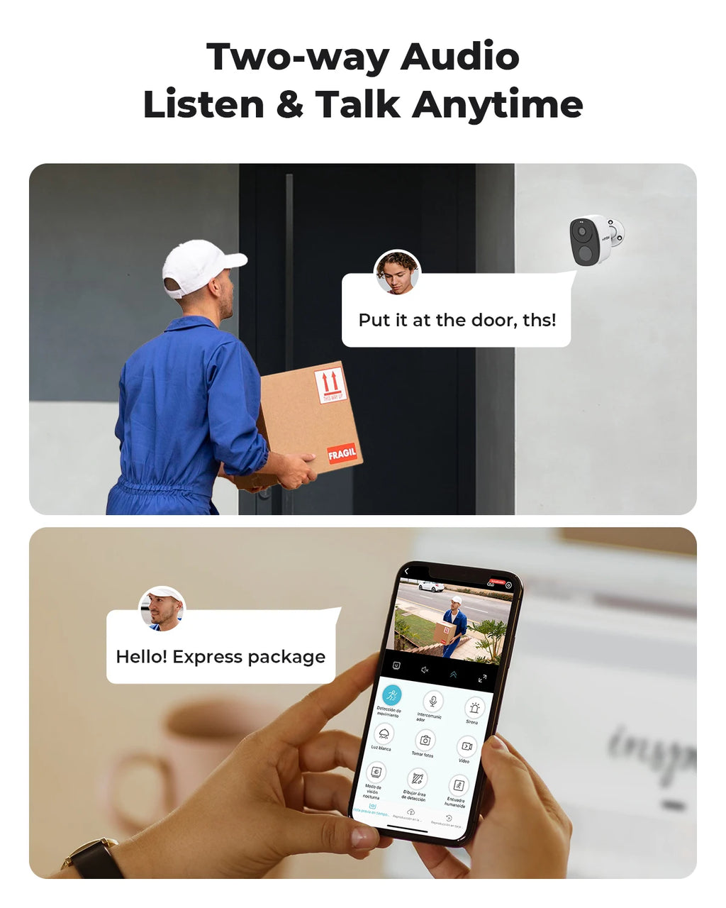 Die Kamera bietet Zwei-Wege-Audio für Kommunikation über die zugehörige App, unterstützt Android und iOS Geräte und sendet bei Bewegungen Telefonalarme sowie lokale Alarme. Mit dieser kabellosen Sicherheitskamera behalten Sie Ihre Umgebung jederzeit im Blick und schützen Ihr Eigentum effektiv.
