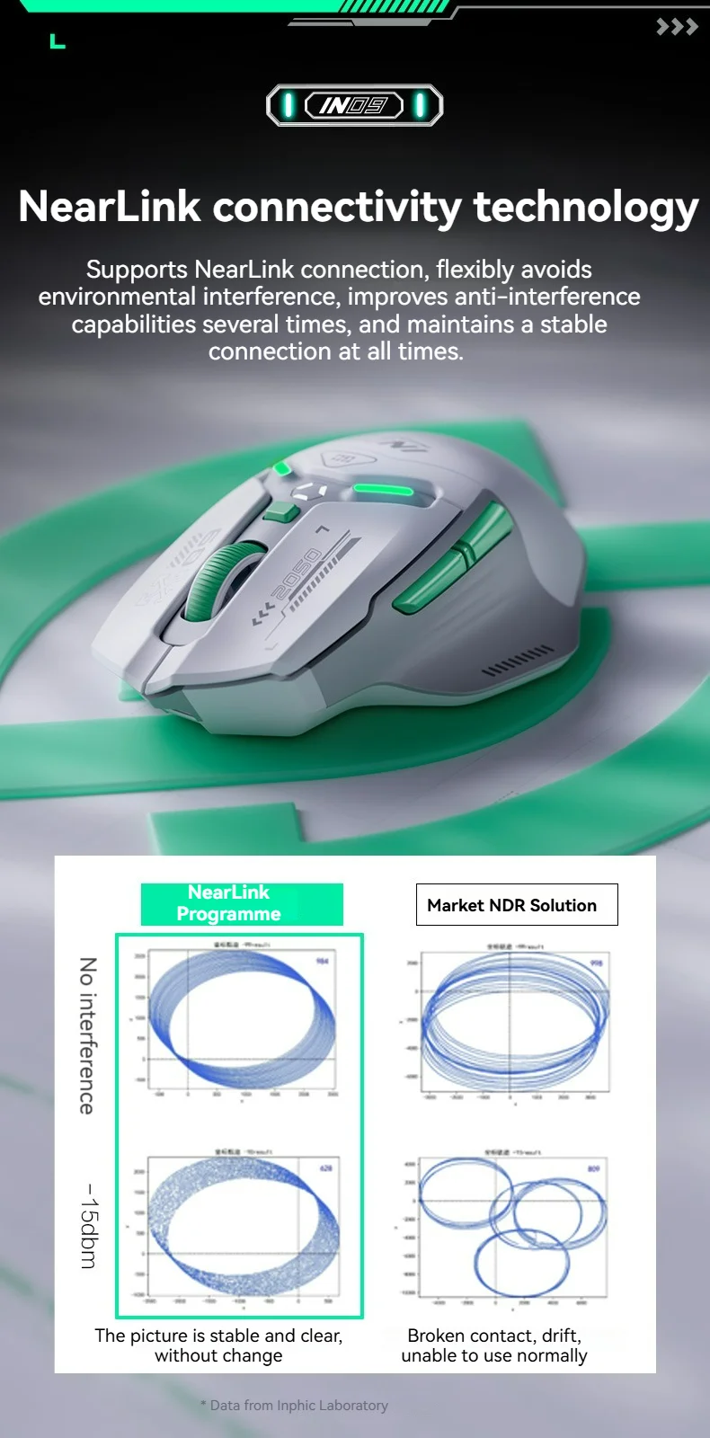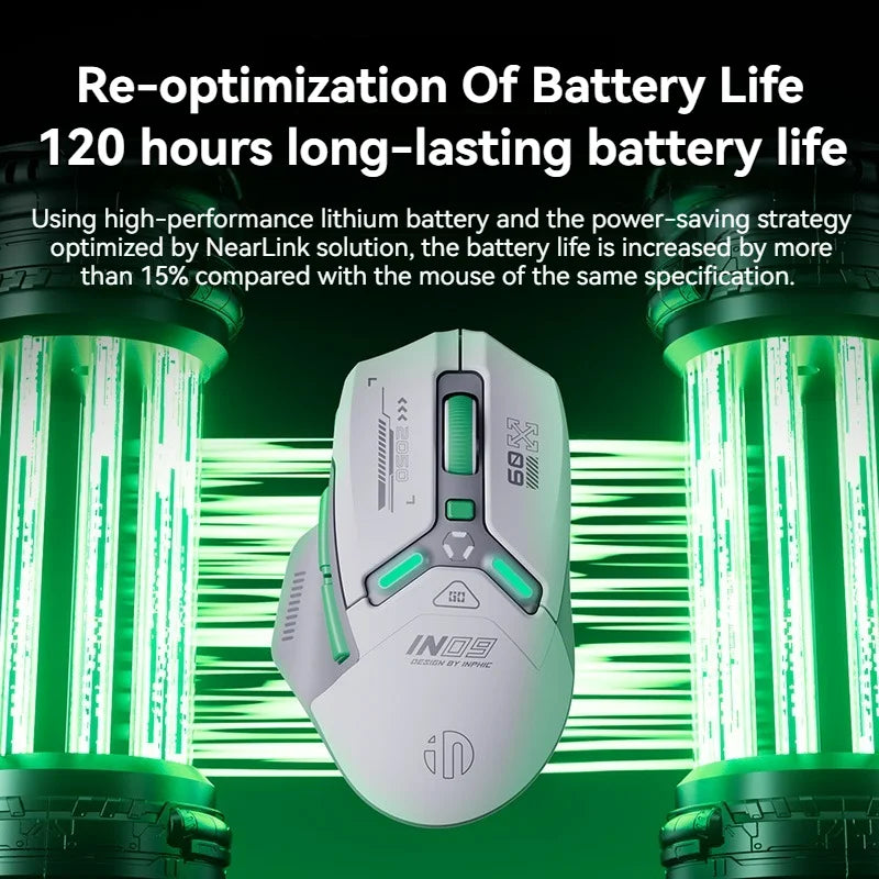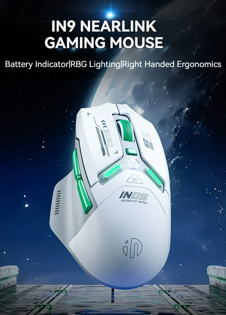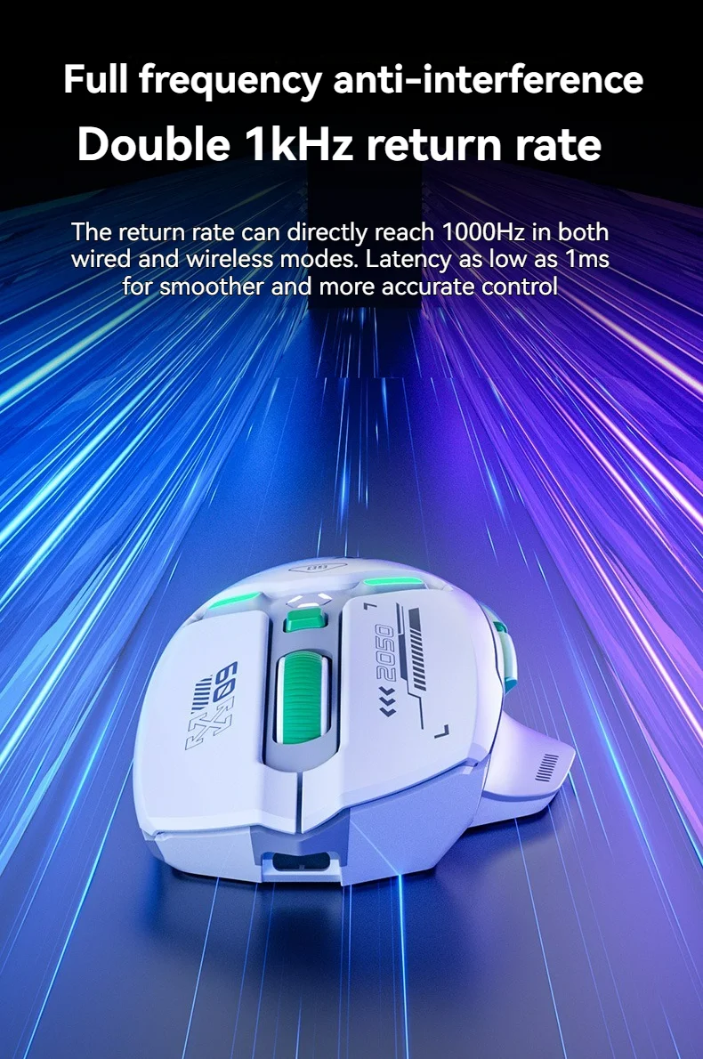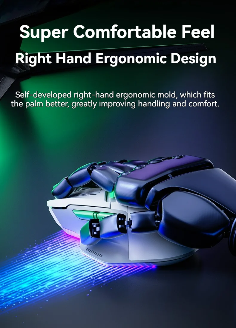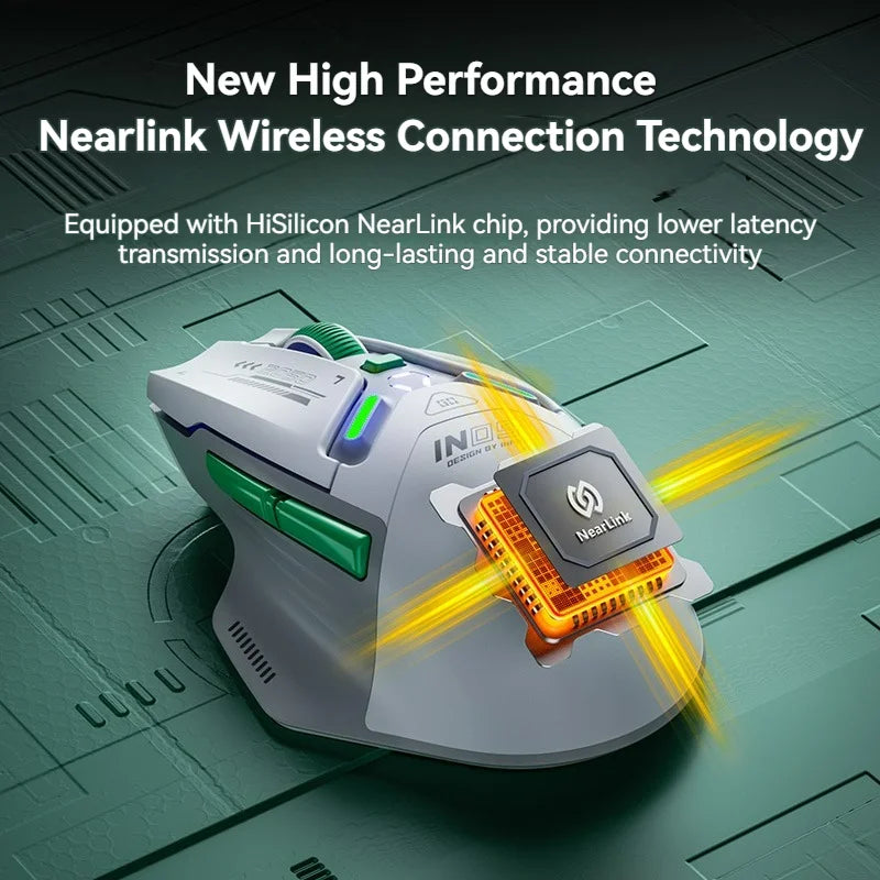 Die Maus verfügt über sechs Tasten, darunter eine DPI-Einstellungstaste und eine Hintergrundbeleuchtung, die das Design optisch aufwertet. Für eine kabellose Verbindung stehen Bluetooth und ein 2,4-GHz-Funkmodus zur Verfügung, außerdem kann die Maus auch kabelgebunden genutzt werden. Die kabellose Verbindung basiert auf dem HiSilicon NearLink BS2820 Chip, der eine stabile und schnelle Datenübertragung ermöglicht.