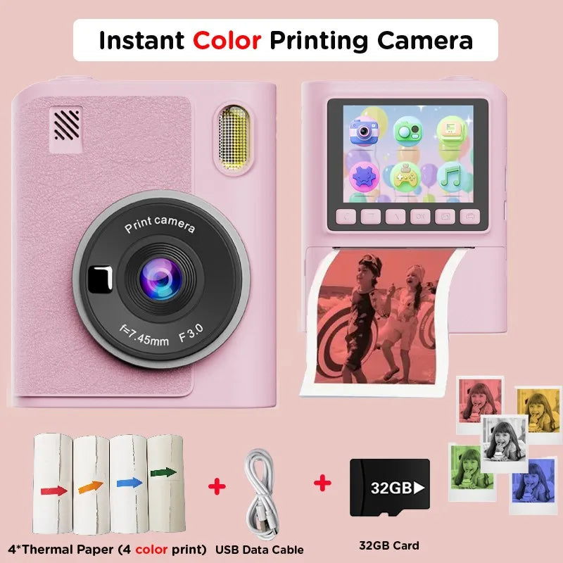 Kinder-Sofortdruckkamera mit 1080P, 5-Farben-Druck und Spielen