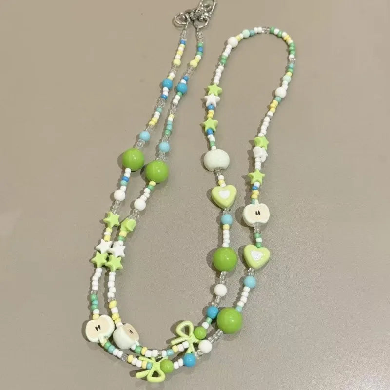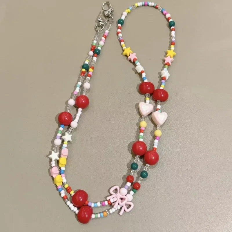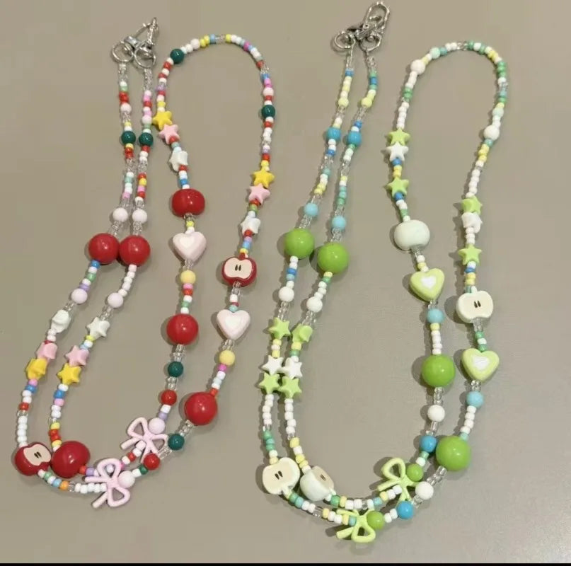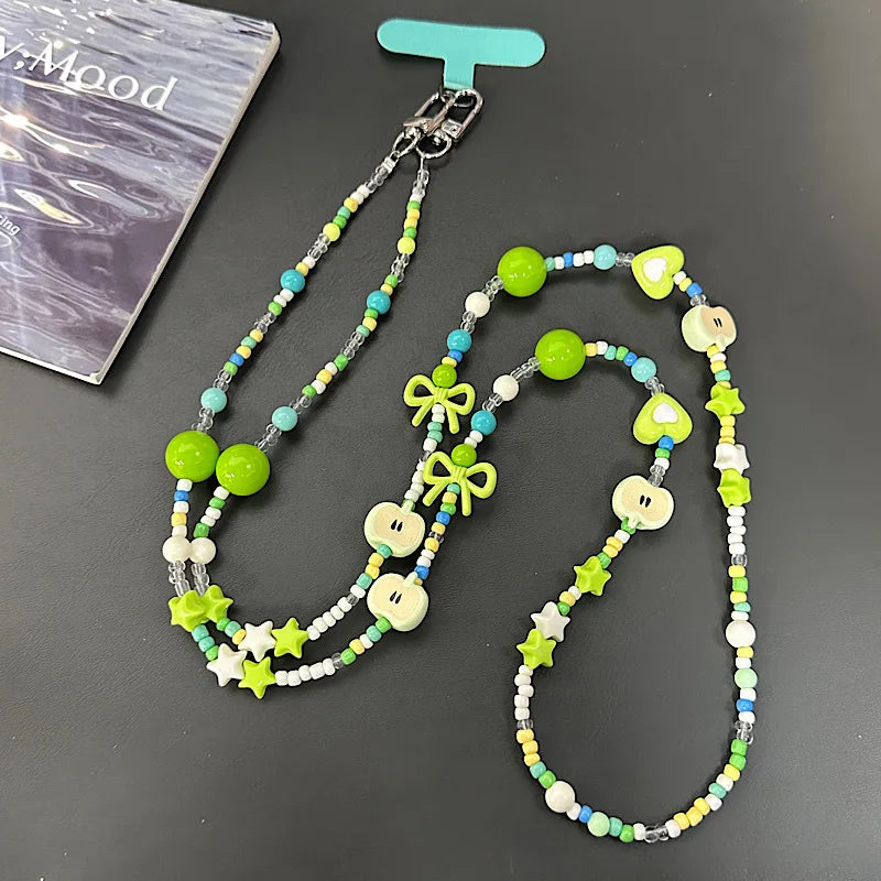 Langes Bonbonfarbenes Handyband mit Kawaii Perlenkette