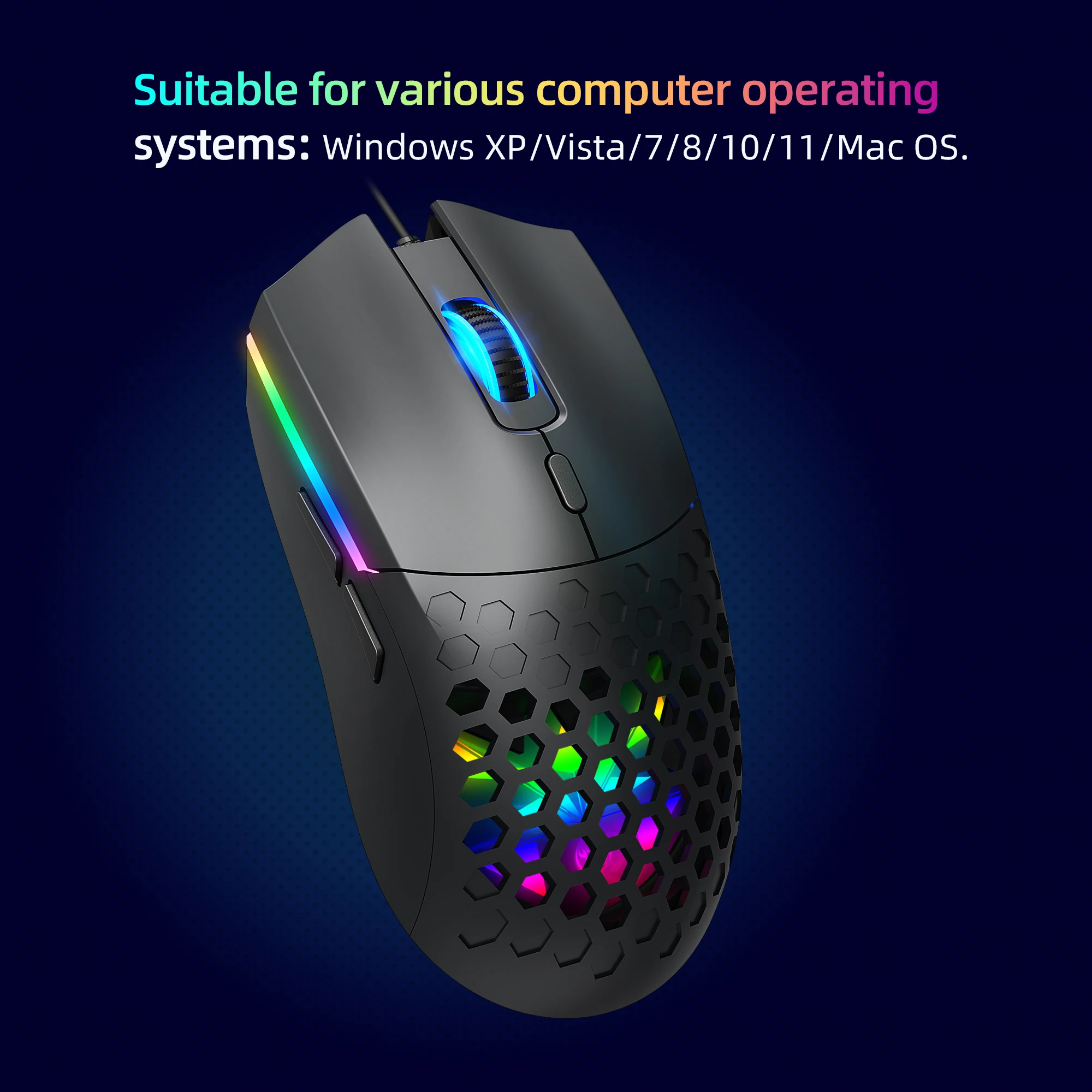 Kabelgebundene 6400 DPI Gaming-Maus mit RGB & Wabenstruktur – Leicht, ergonomisch & reaktionsschnell für PC-Gamer
