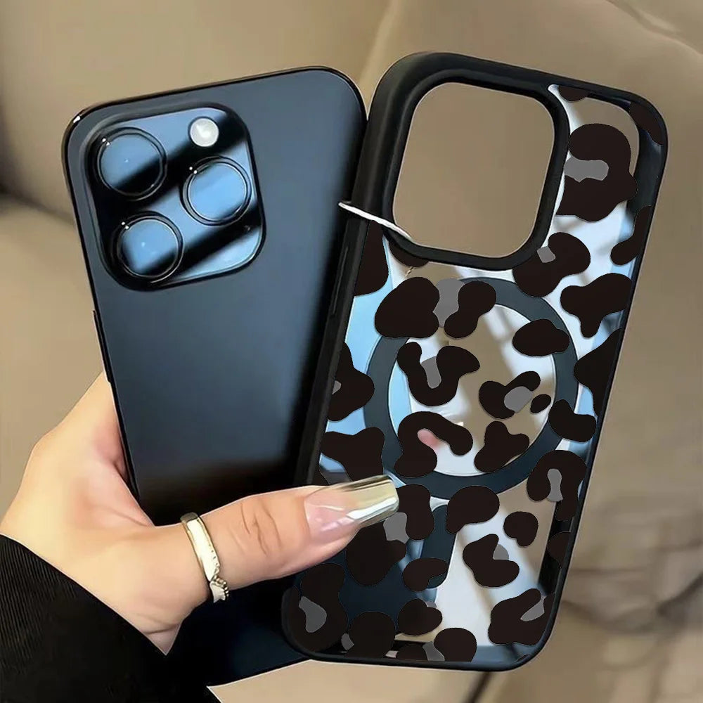 Leopardenmuster Klare Magnet-Hülle für iPhone mit kabellosem Laden