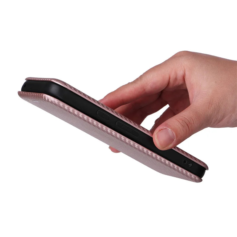 Diese Flip-Hülle für das Google Pixel 8A kombiniert luxuriöses Carbon-Faser-Design mit magnetischer Adsorption für sicheren Halt und eleganten Stil. Hergestellt aus hochwertigem Material, bietet die Hülle vollständigen Schutz vor Kratzern, Staub, Stößen und Fingerabdrücken.